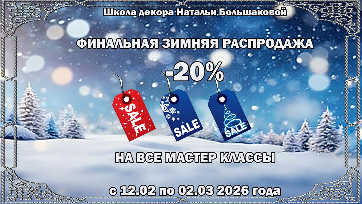 В интернет-магазине "Романтический декупаж" Вашему вниманию предлагаются к покупке мастер классы по декупажу, в которых Наталья Большакова досконально, подробно объясняет все нюансы, все тонкости в работе.Это пошаговые инструкции для желающих освоитьтонкости художественного декупажа.Заходите, смотрите, выбирайте, заказывайте, всем всегда рада!