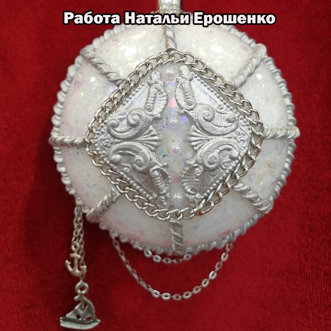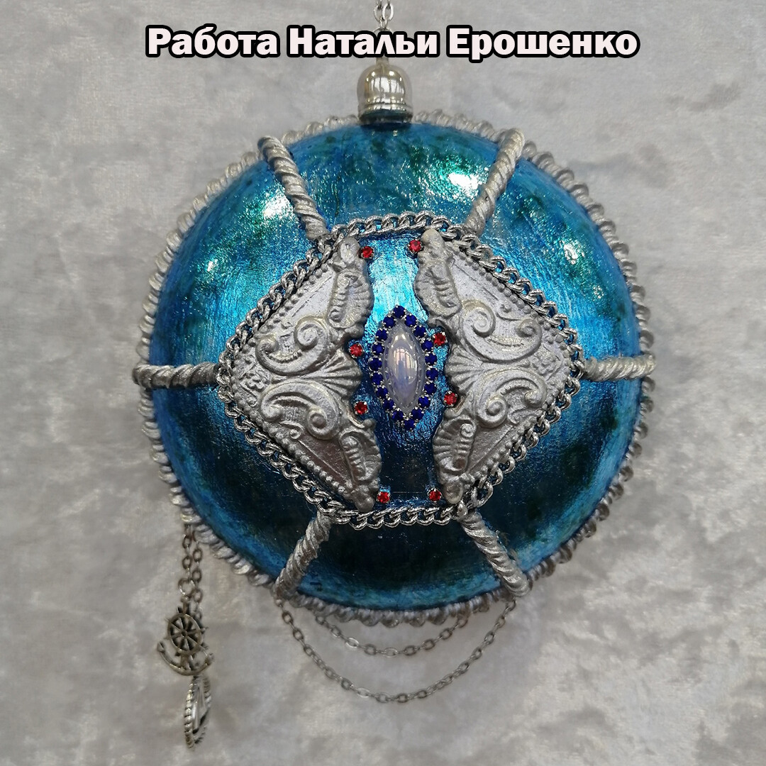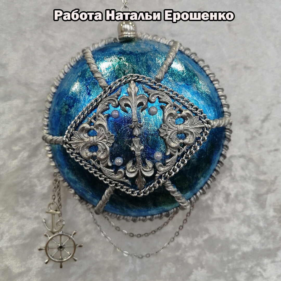 - Дополняем декор стразами, декоративными элементами на морскую тему.