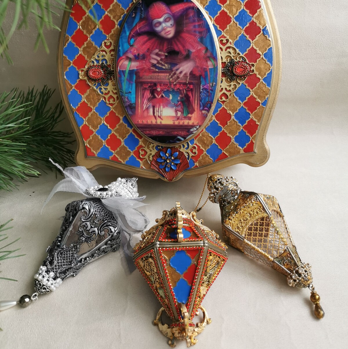 Экспресс декор оригинальных новогодних игрушек в трех вариантах исполнения-