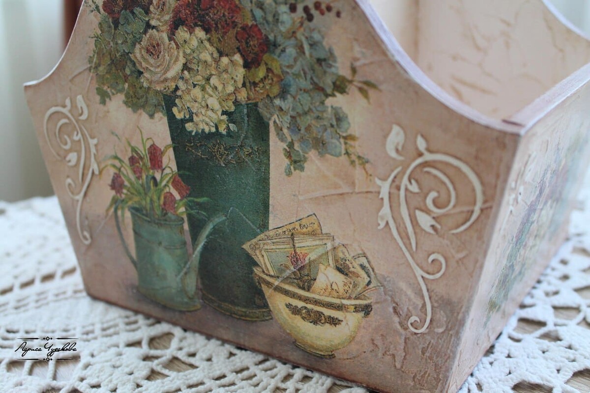 Данная работа не просто в стиле Прованс, а еще и антик. Объемные трещинки и