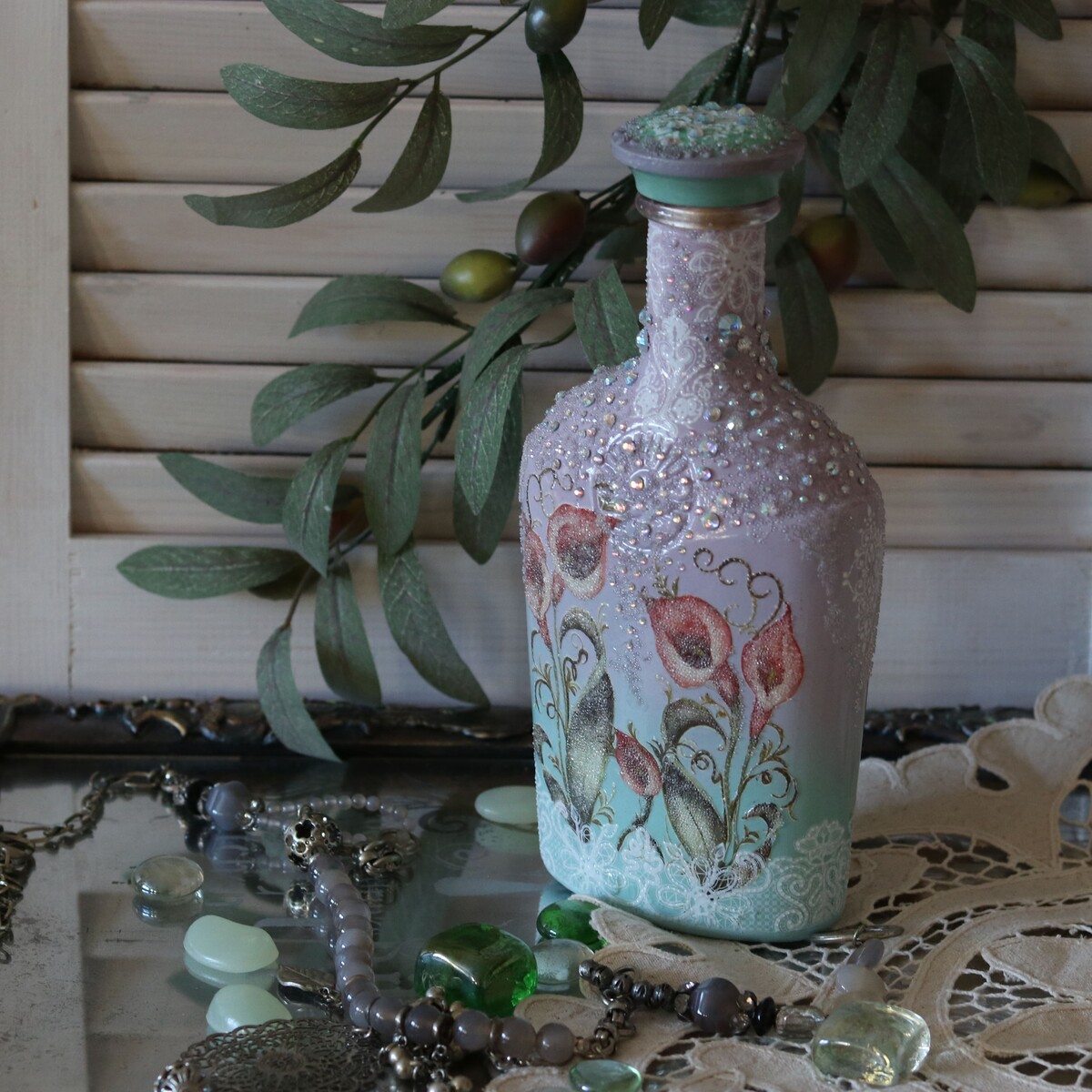 Будем декорировать изящную бутылочку «Хрустальные росы».