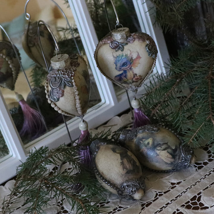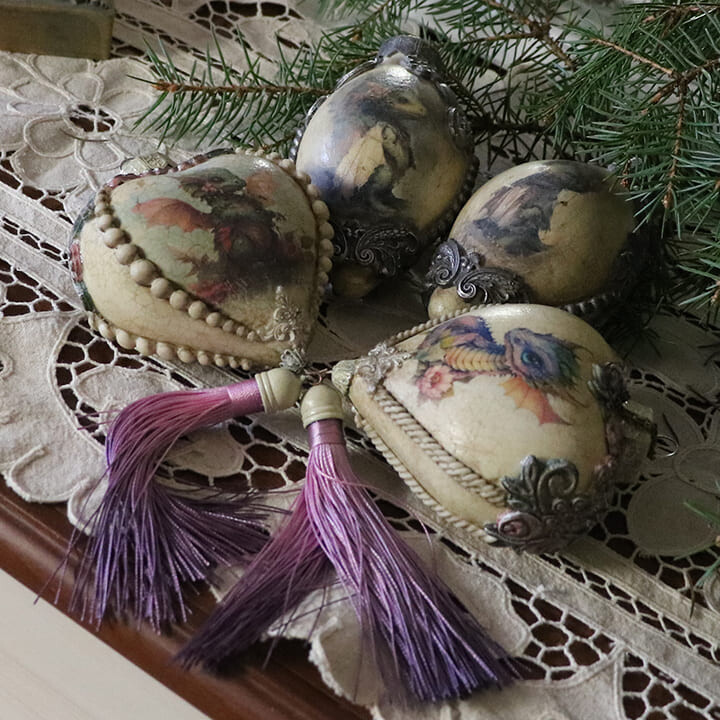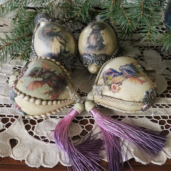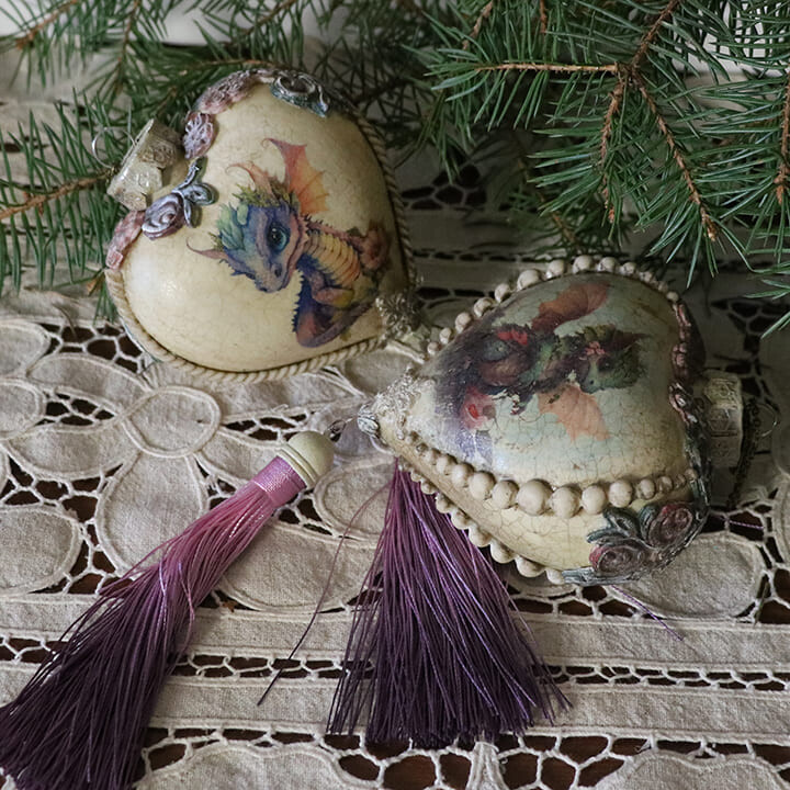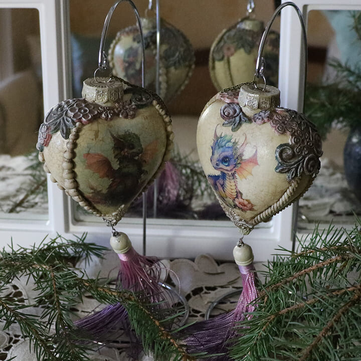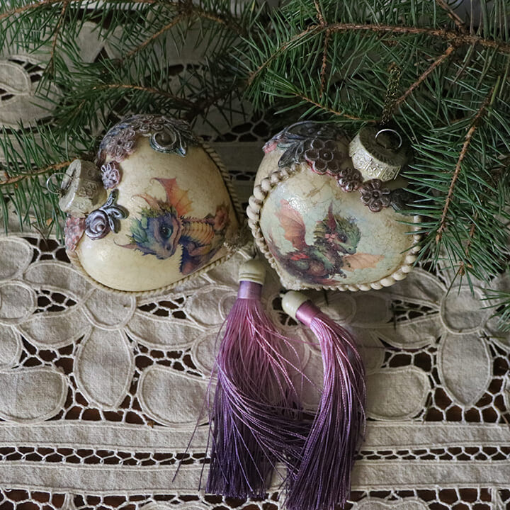 А дракончики бывают милые? Да, конечно, если это Новогодние игрушки в винтажном стиле.