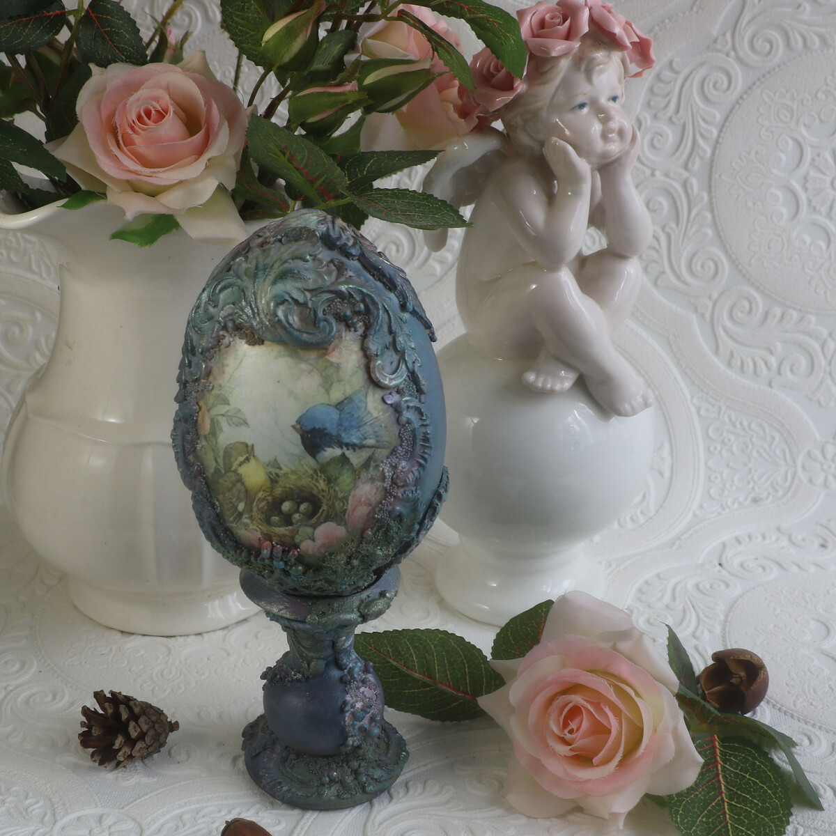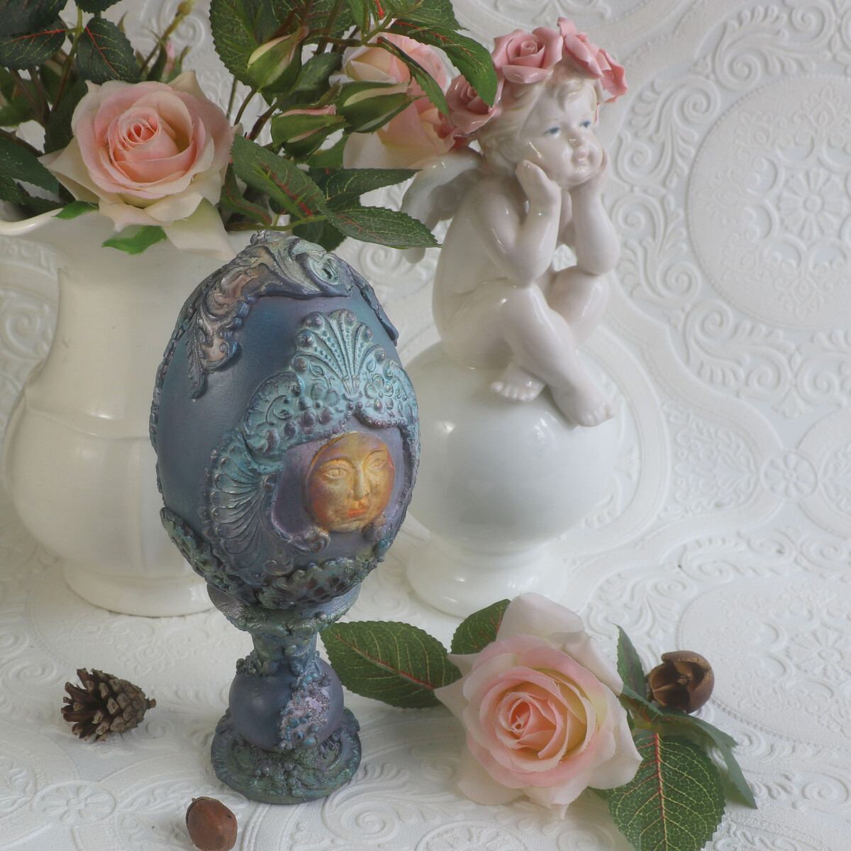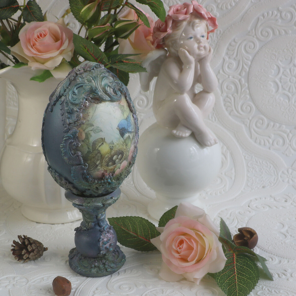 "Интерьерное пасхальное яйцо Весна с объемным декором"
