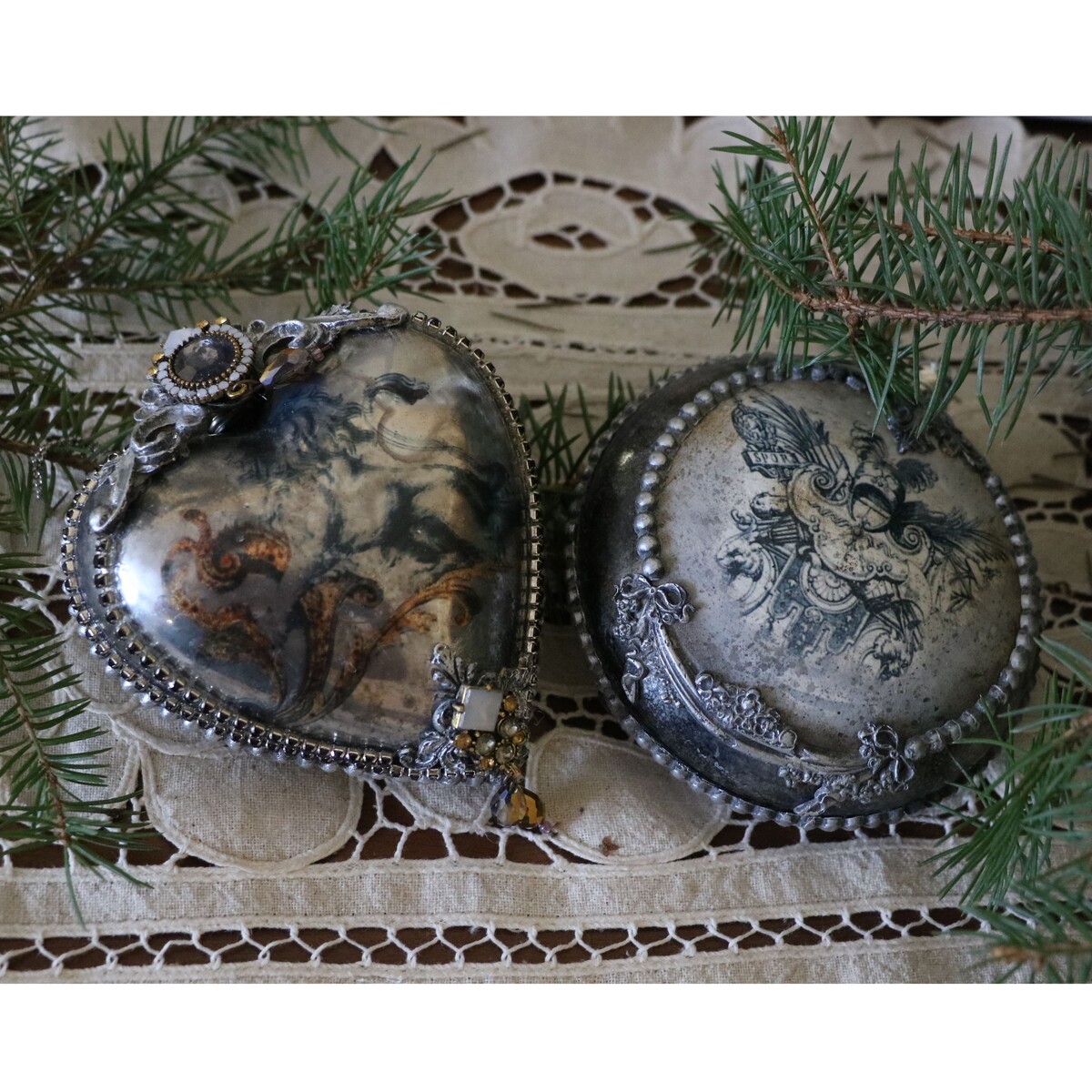 Декор новогодних игрушек в той же технике и с аналогичным декором.