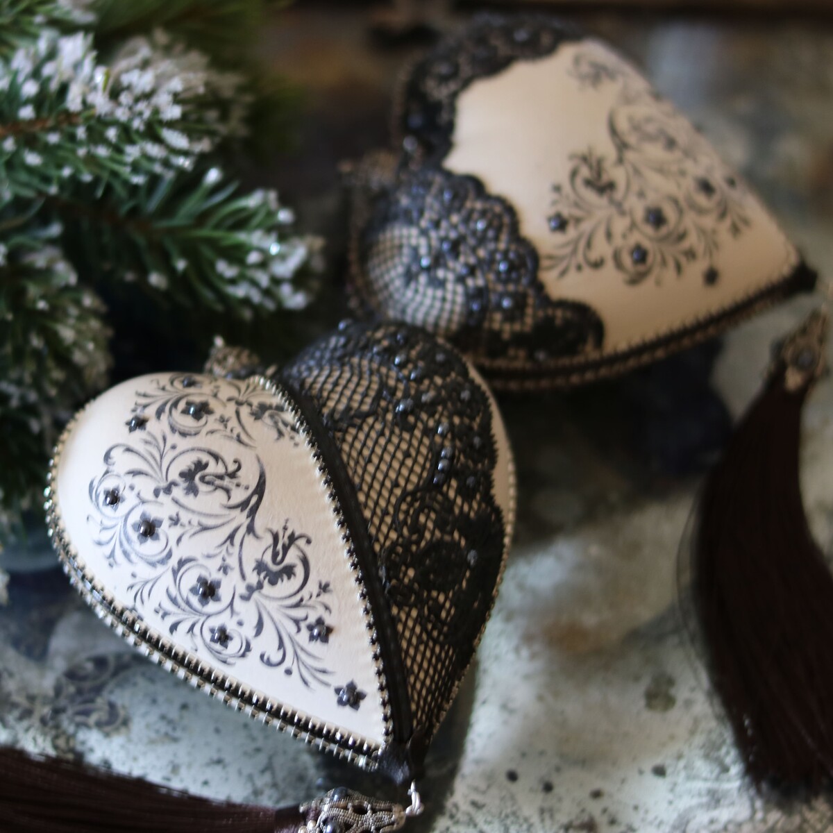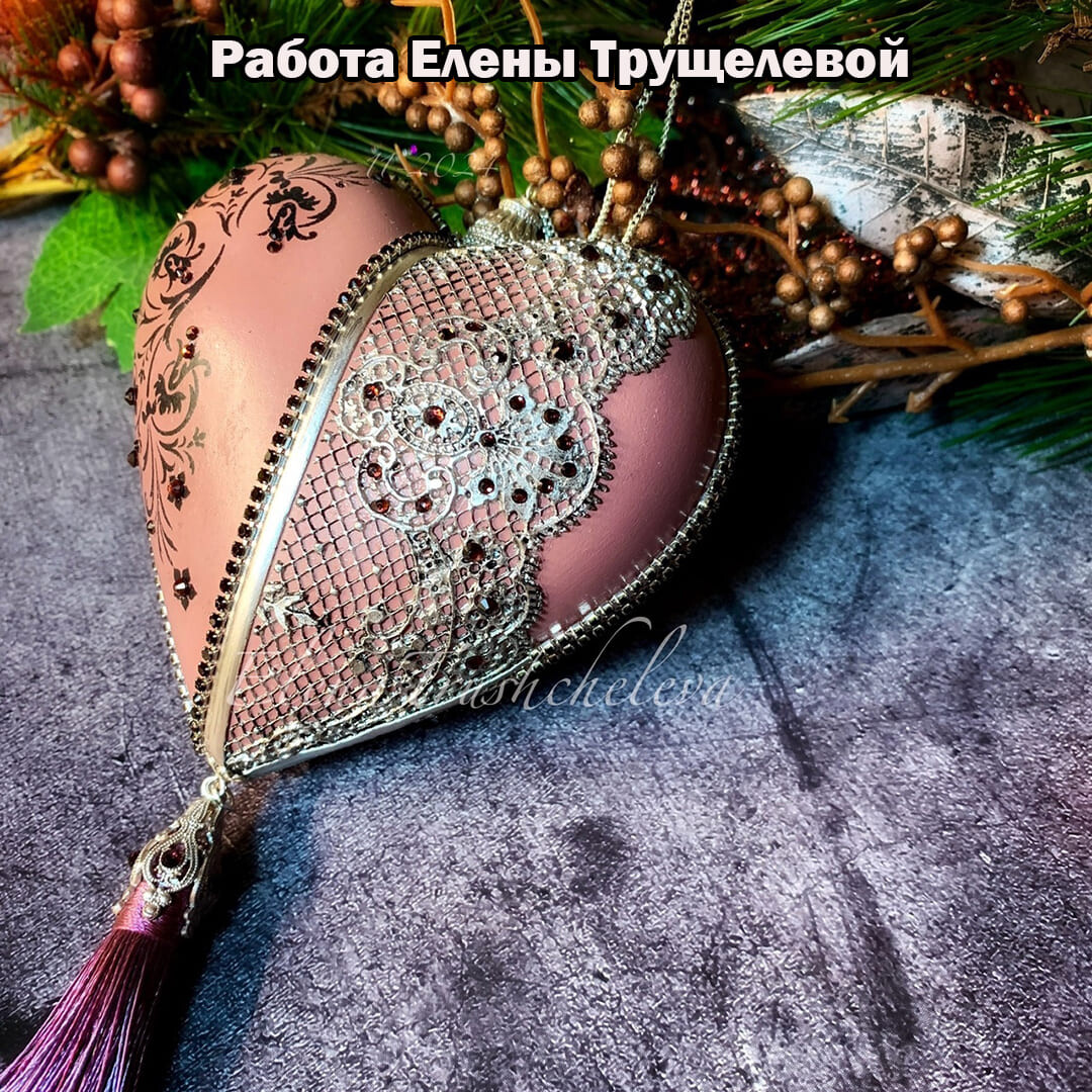 - Украсим игрушки стразами, стразовыми цепочками, витражной лентой и кистями.