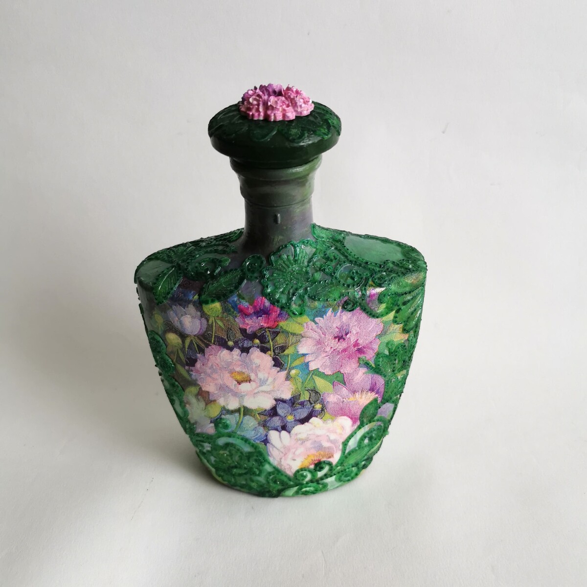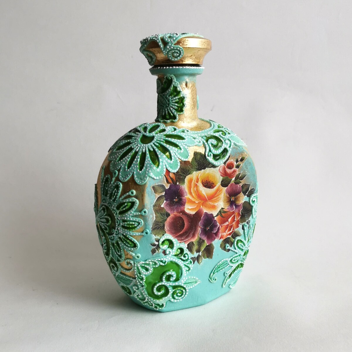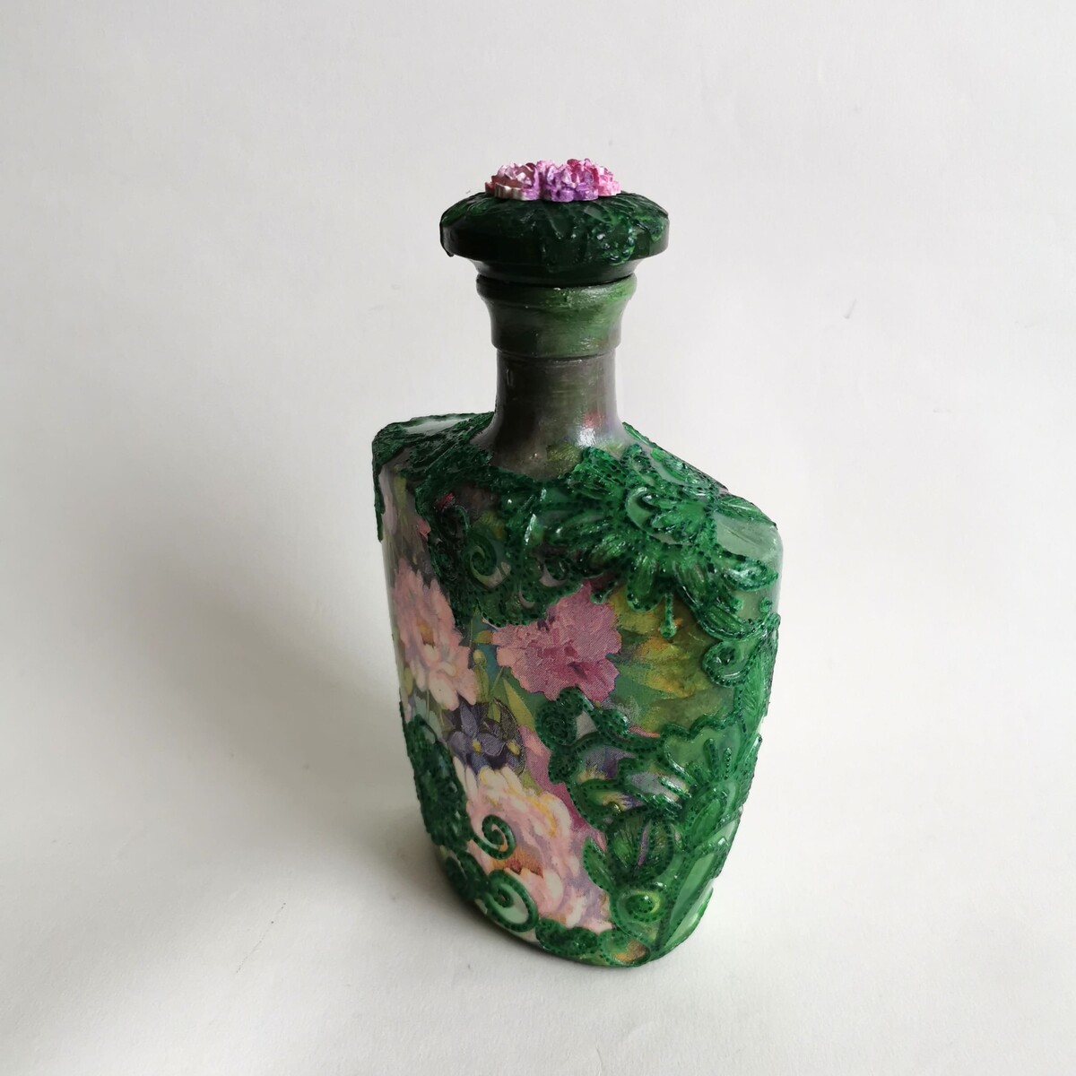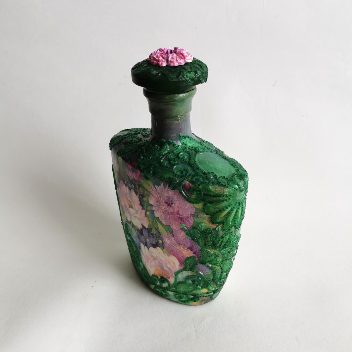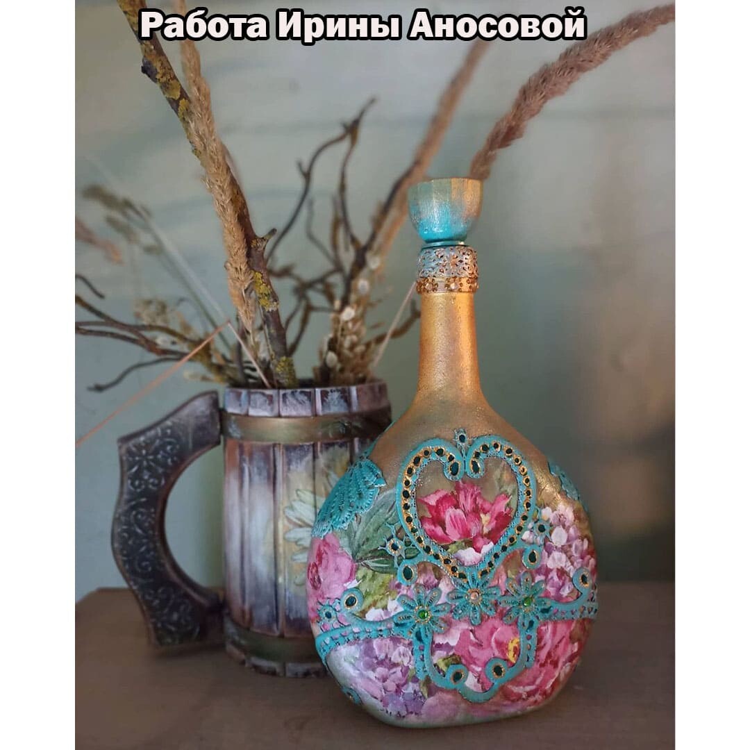 Делаем декупаж с объемными цветами и точечной росписью.
