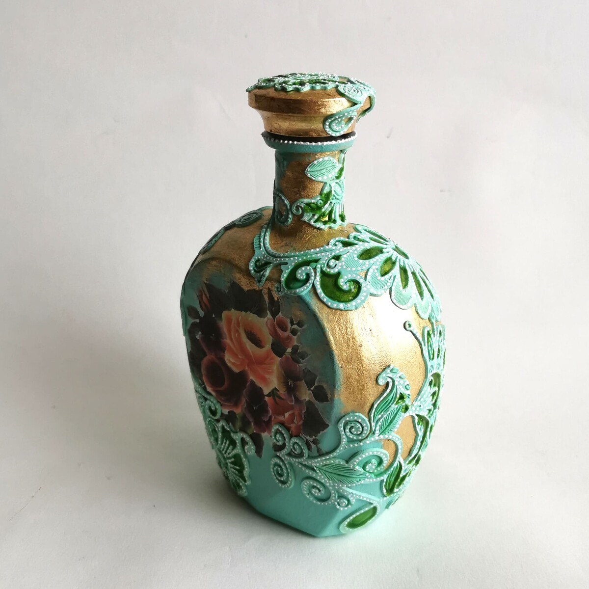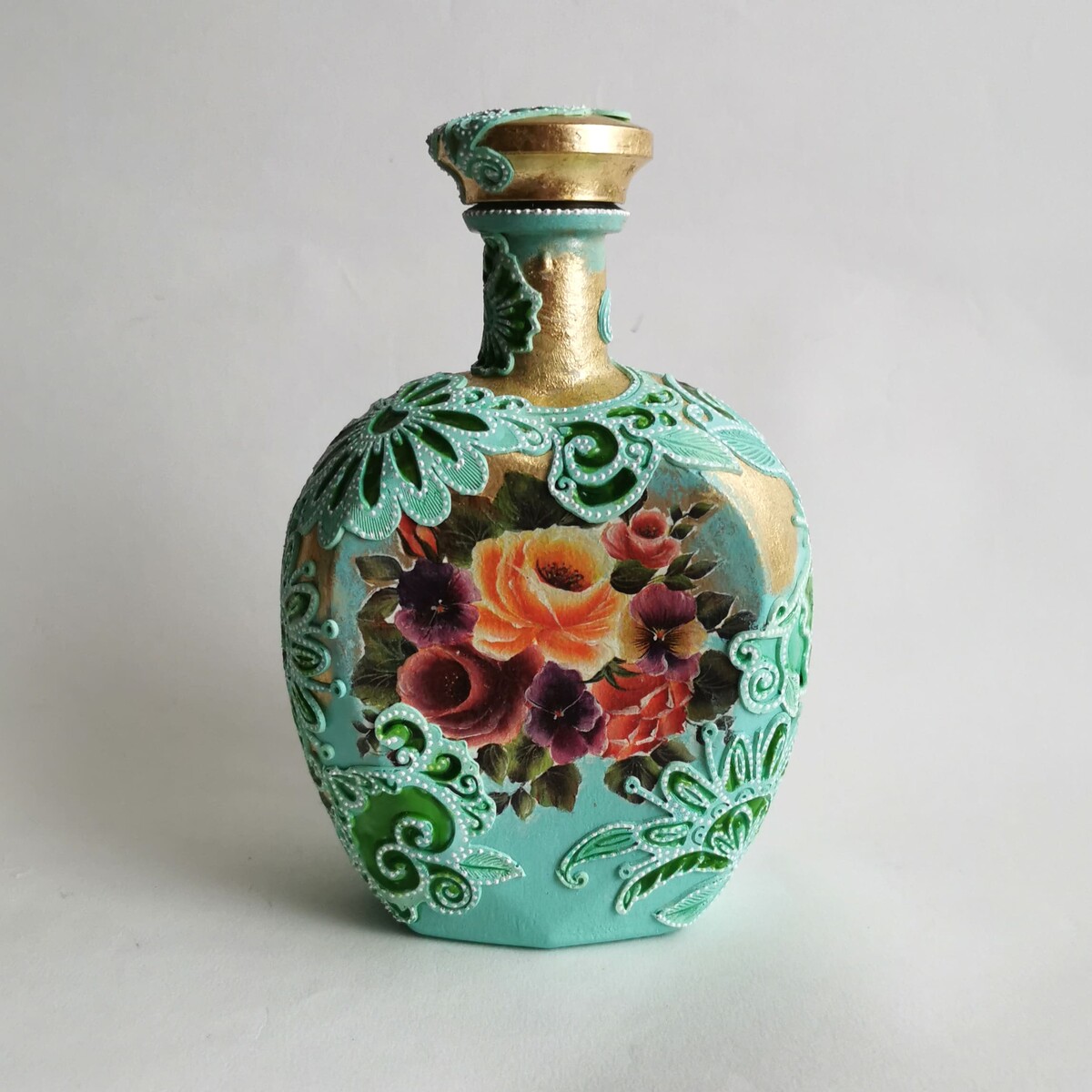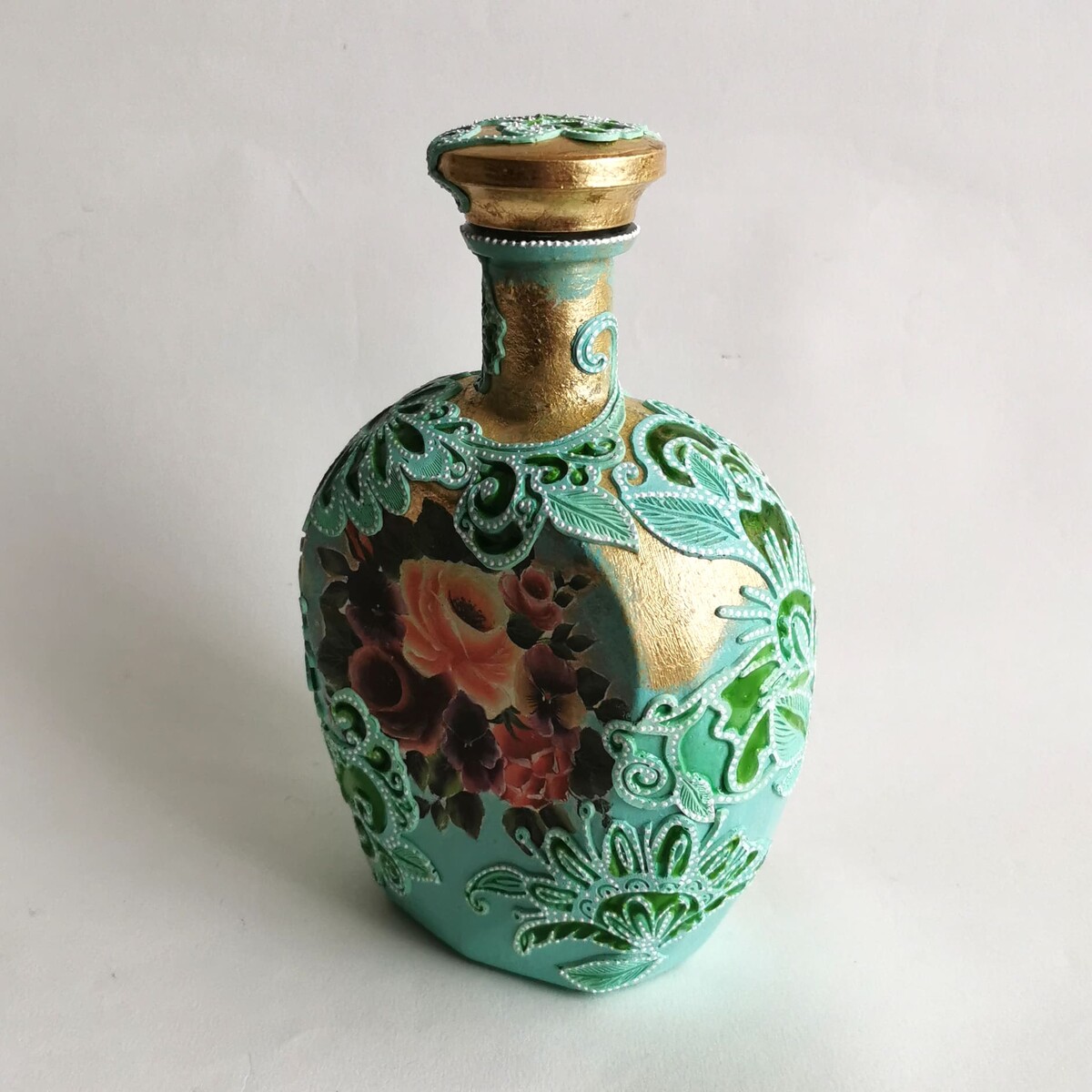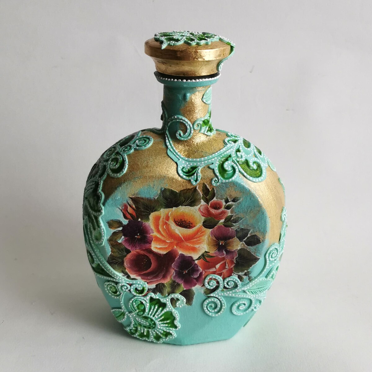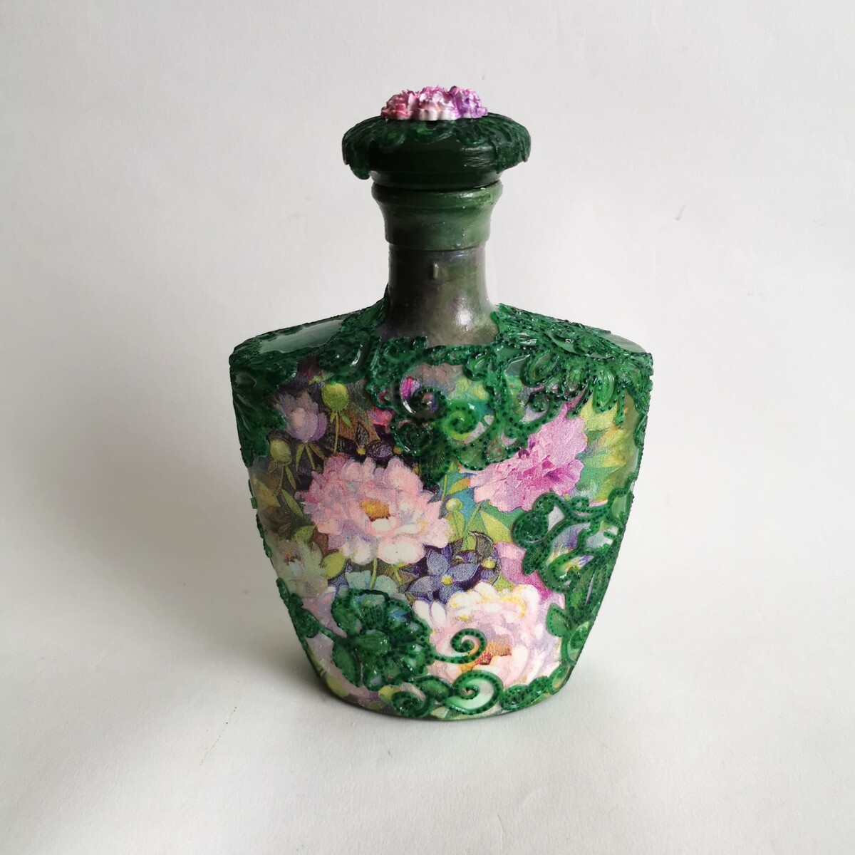 Делаем декупаж с объемными цветами и точечной росписью.