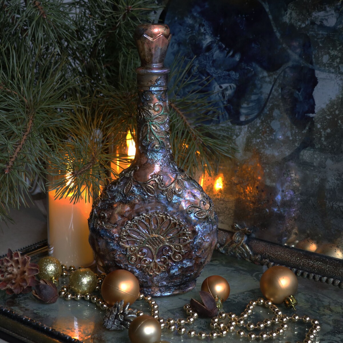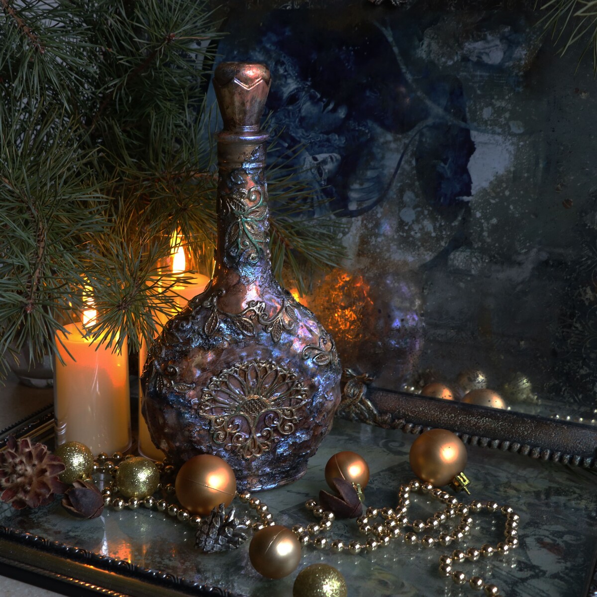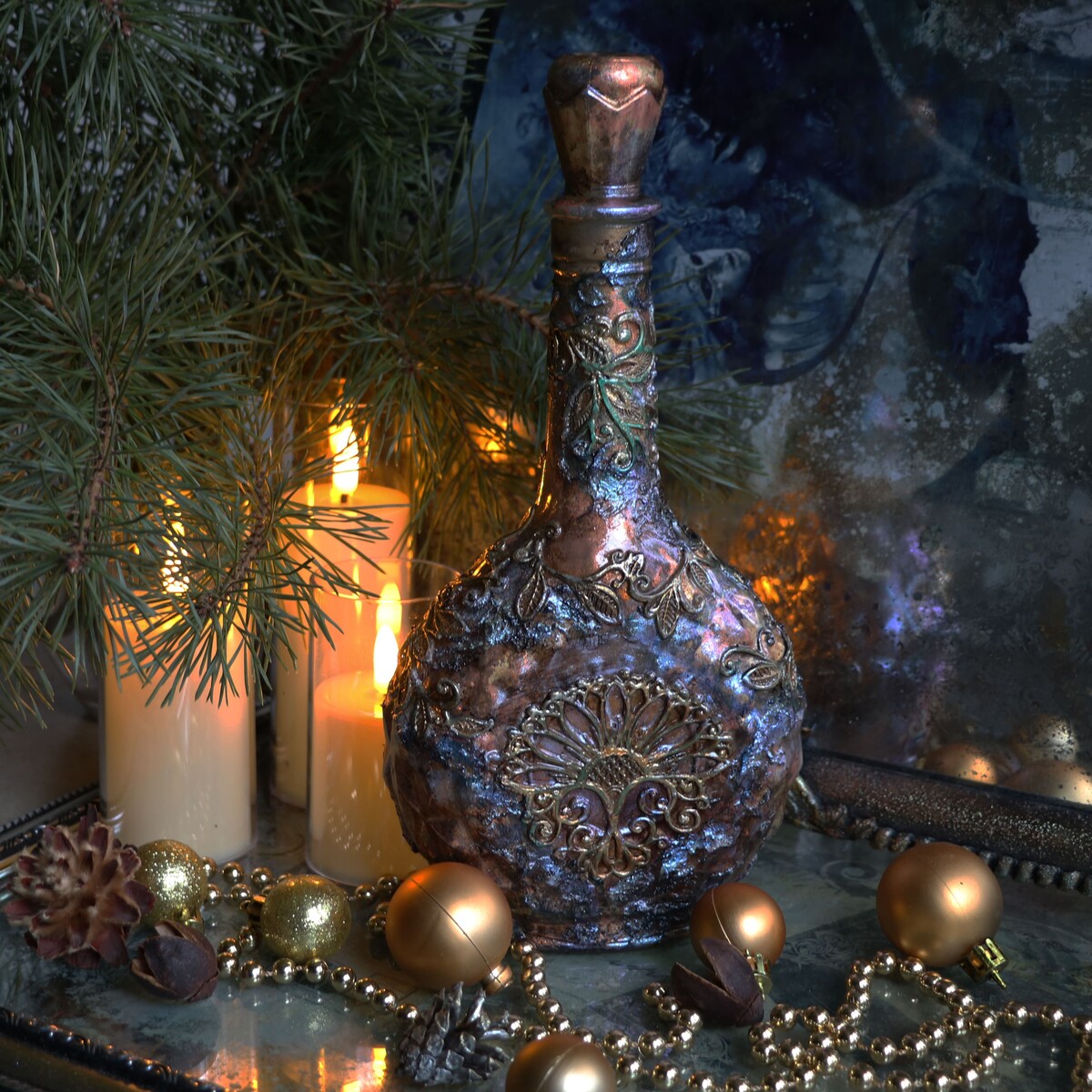 Традиционно на «Рождественских встречах» декорируем бутылочки.