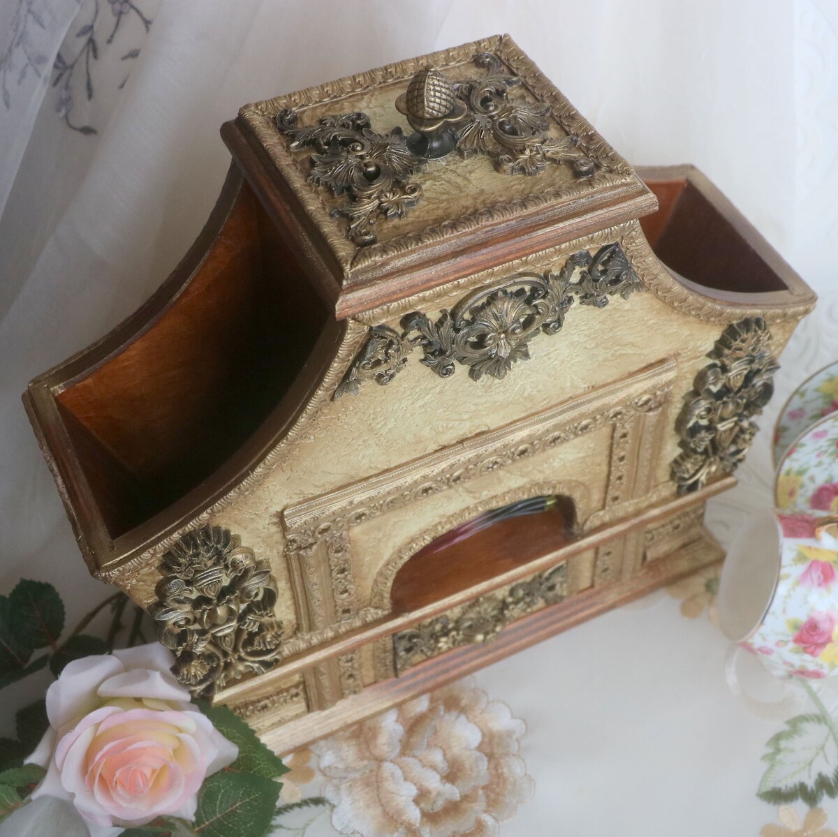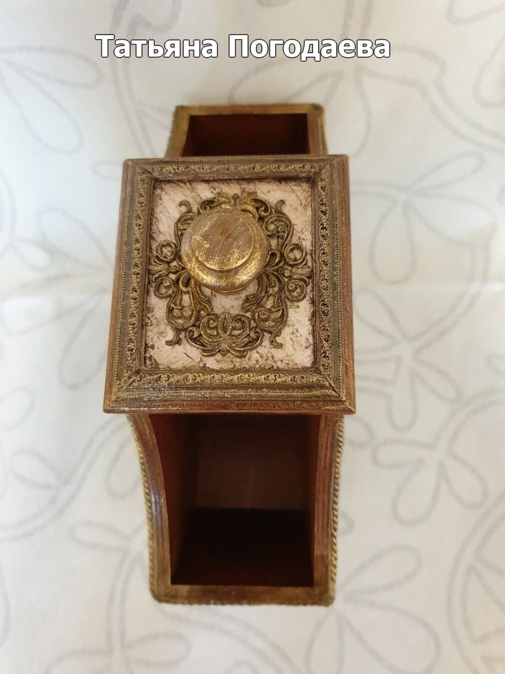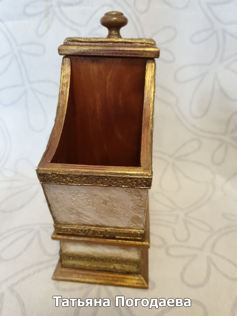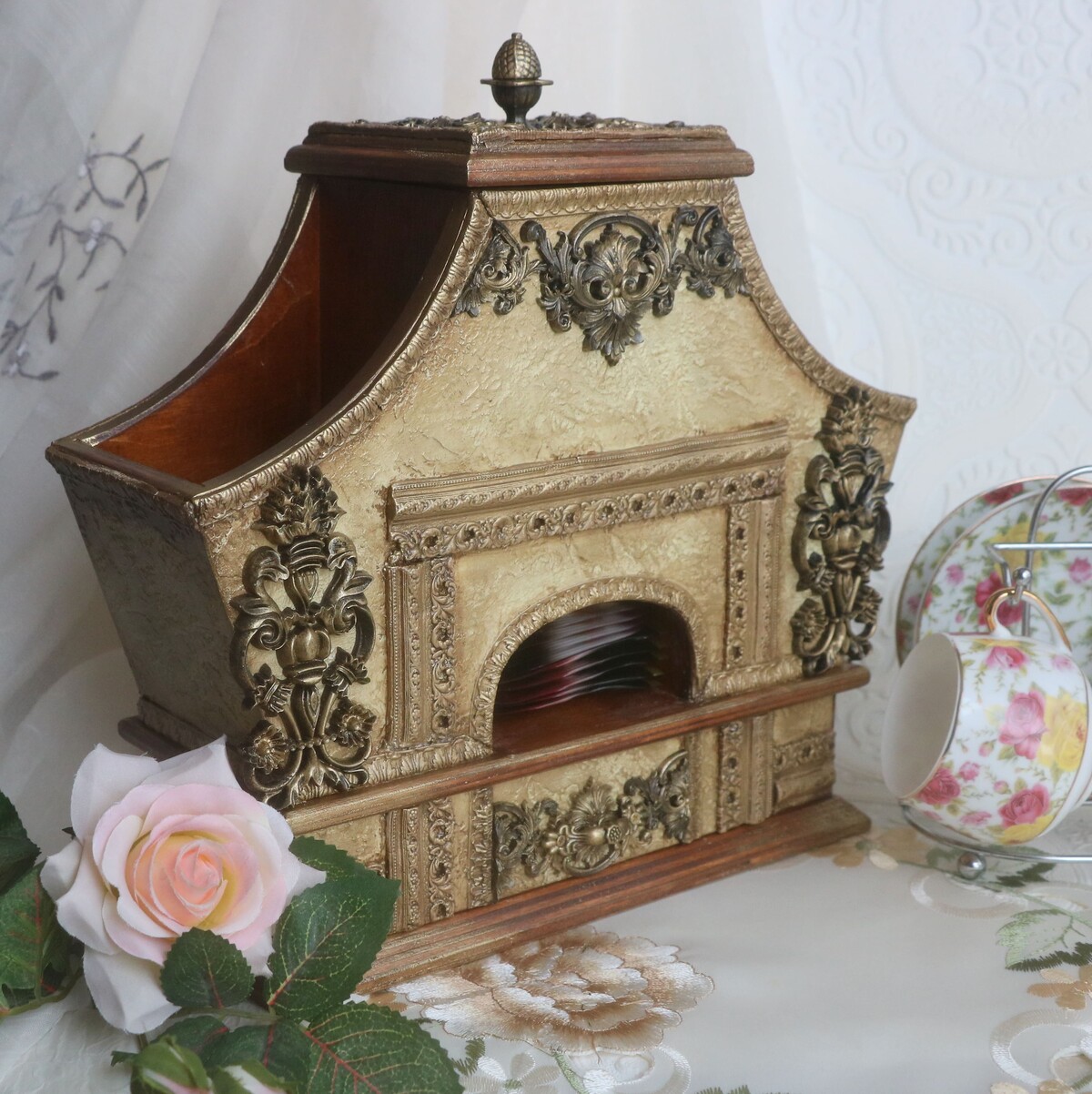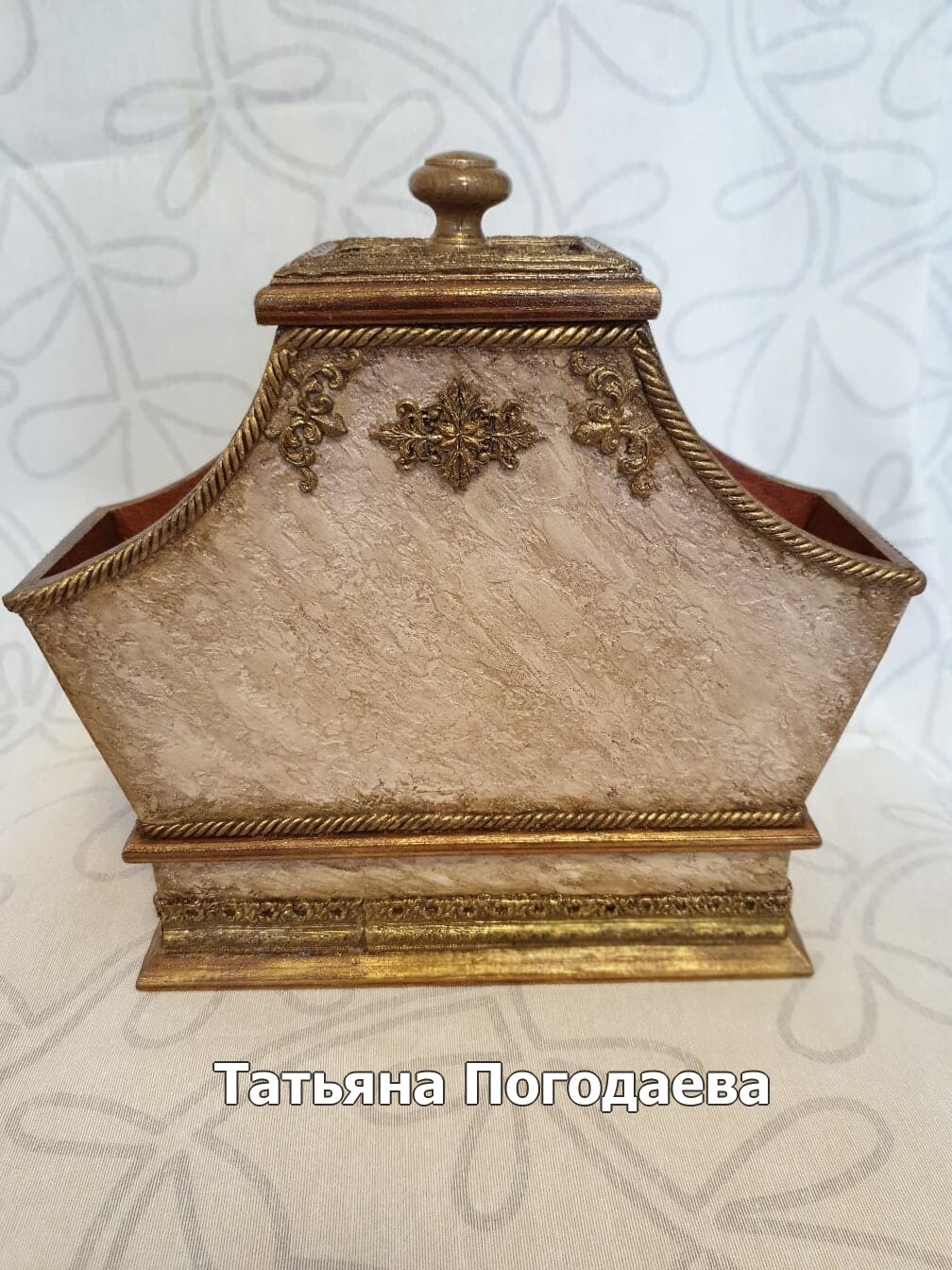 Чайный домик на многих кухнях довольно таки востребованная вещь.Также это отличный подарок на все случаи жизни.Особенно, если он изготовлен из красивой, качественной заготовки,с продуманным декором и в модной цветовой гамме.Данная работа в классическом стиле украсит многие современные кухни.Хотите сделать такую работу сами? Простые, доступные материалыи минимум времени на изготовление этой красоты!У вас мало опыта в декоре? Данная работа очень простая в изготовлении!