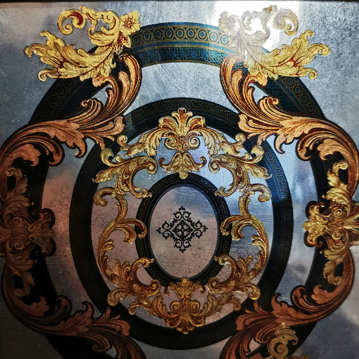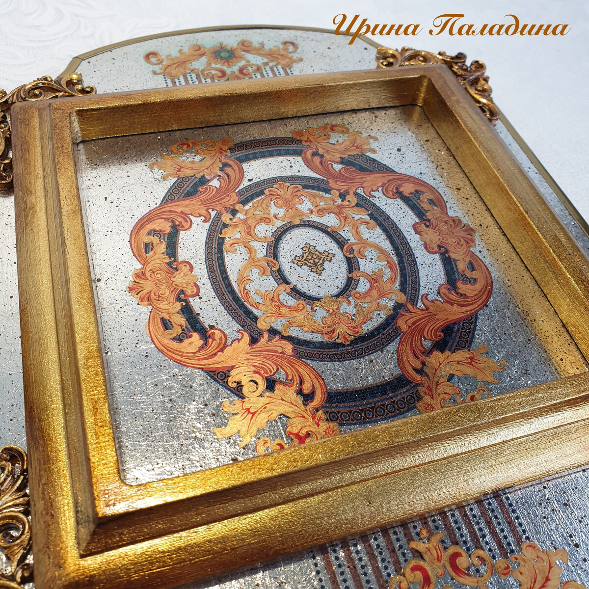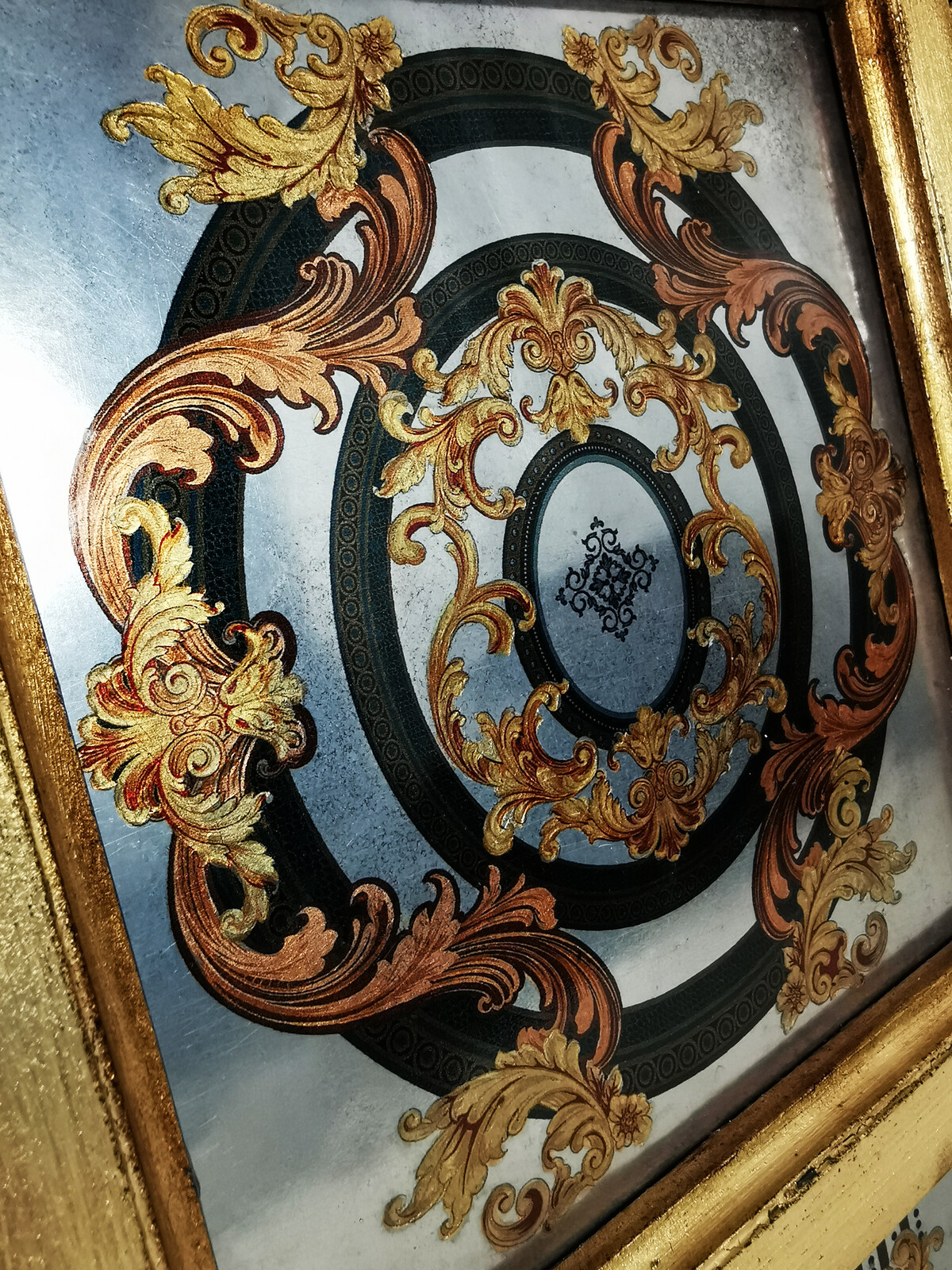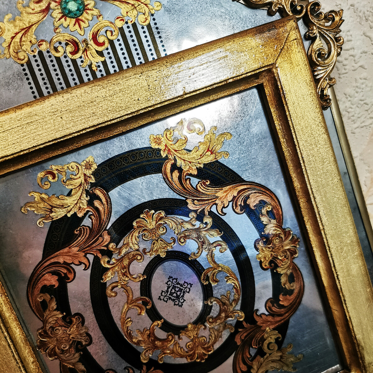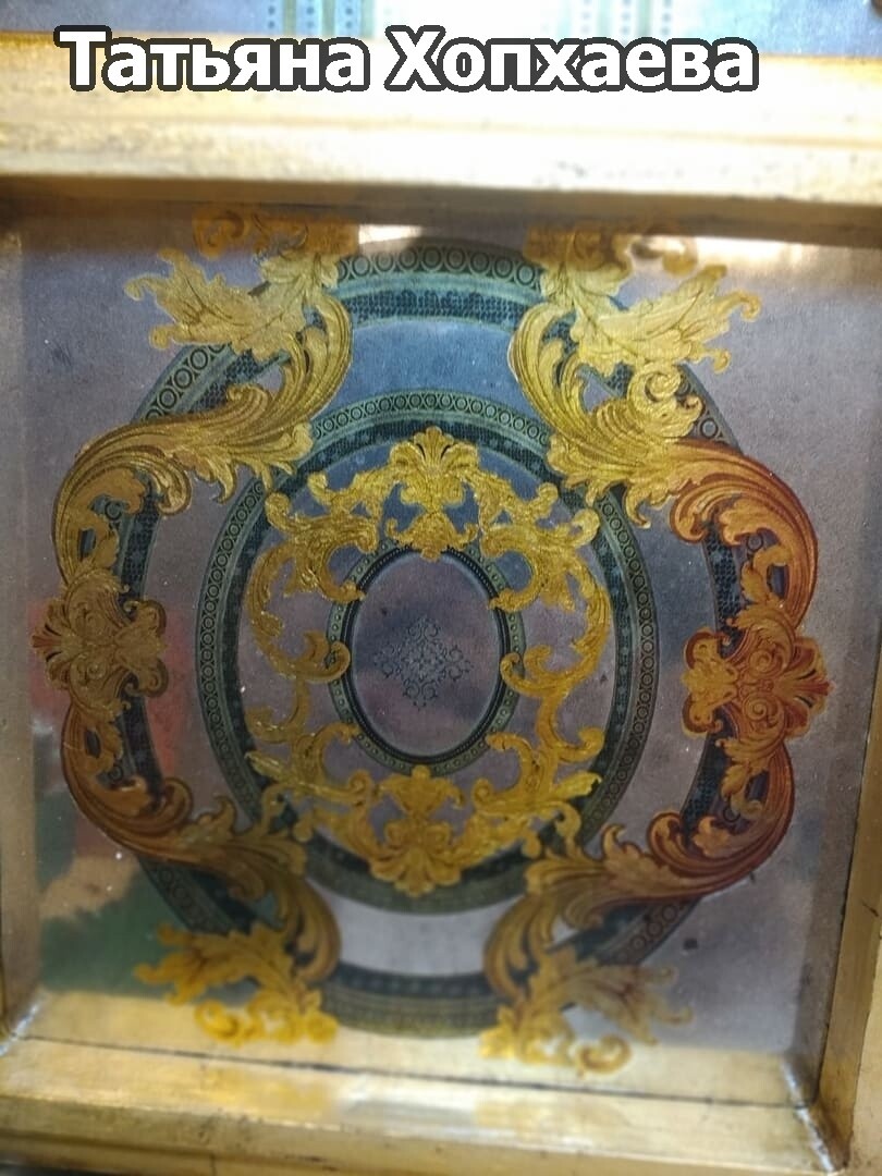 Имитация старого зеркала, с цветным рисунком, а не с черно-белой вживленной картинкой. Такая работа выглядит гораздо интереснее и делается в несколько раз быстрее.