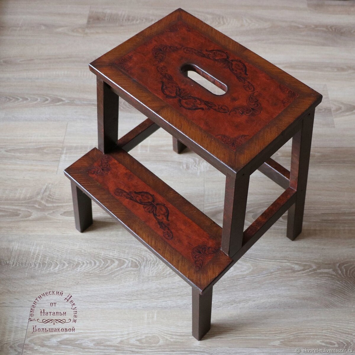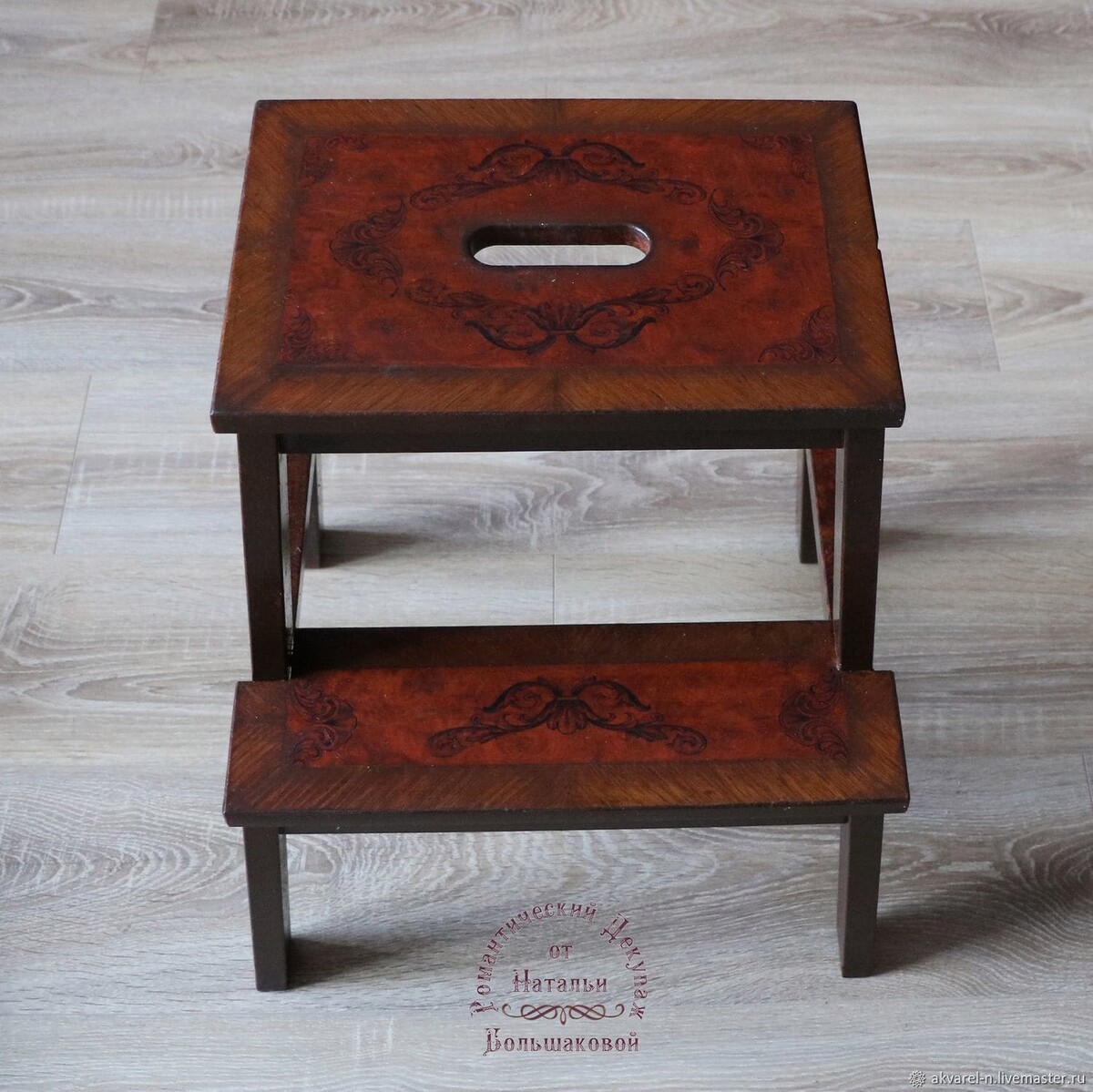 Декор табурета-стремянки в классическом стиле. Такие табуреты пользуются большим спросом, они удобны и незаменимы в хозяйстве.