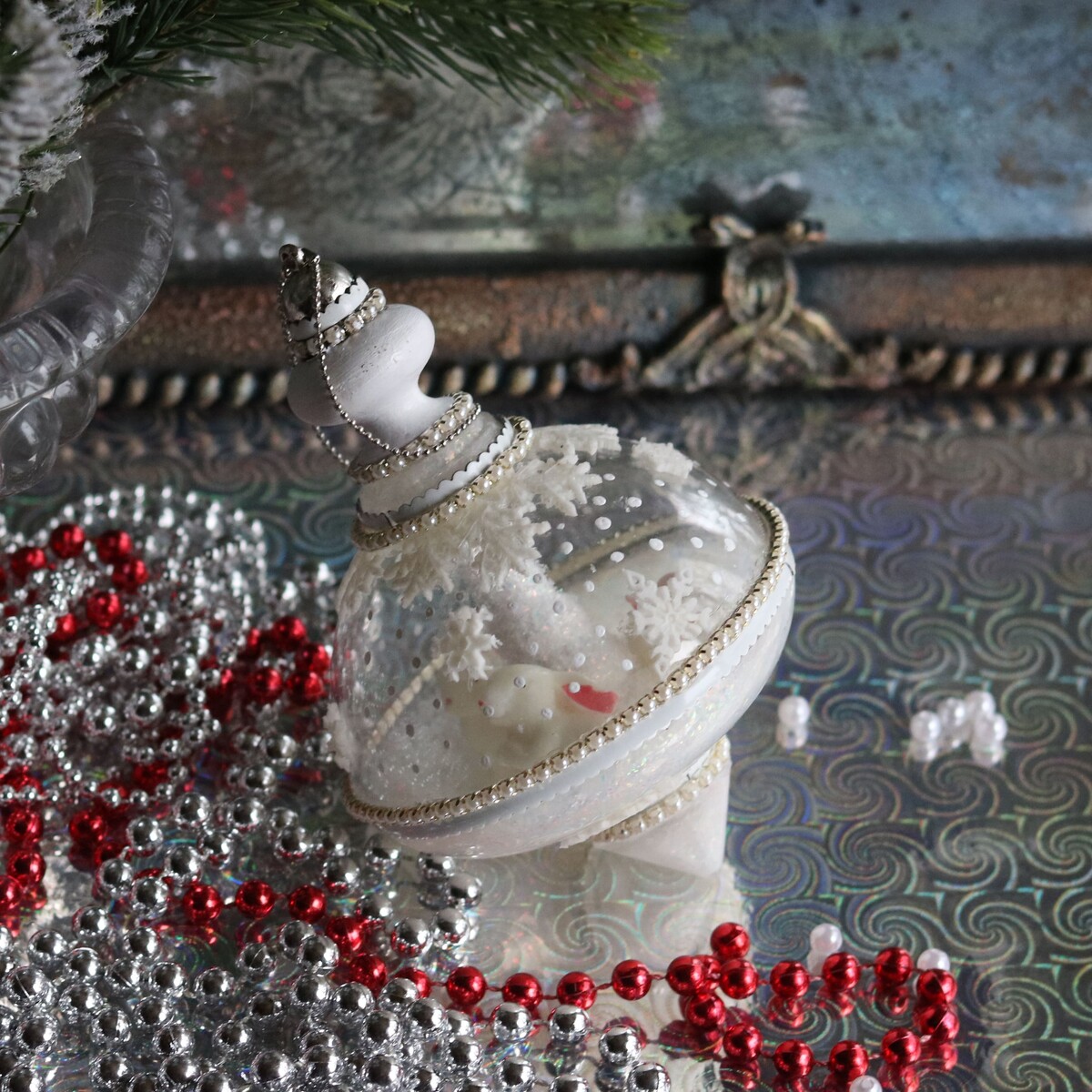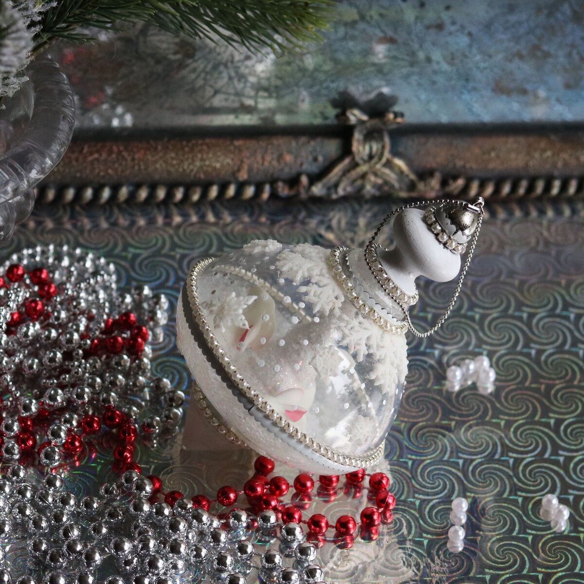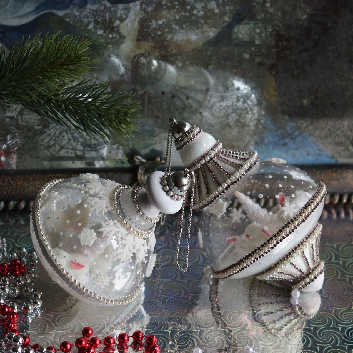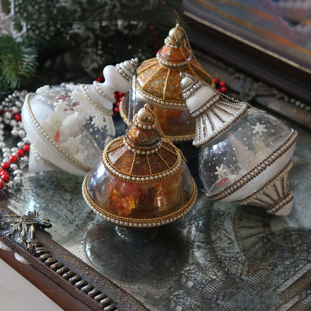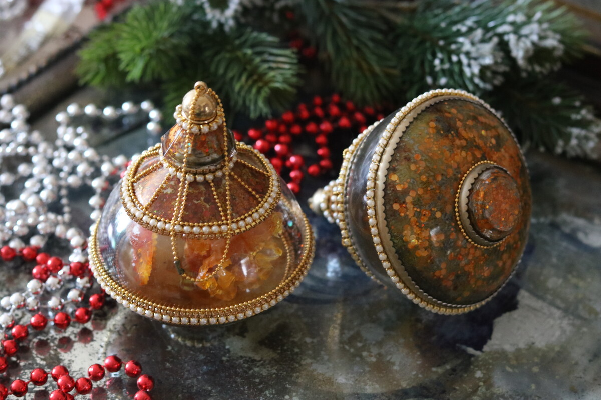 Декорируем нежные, стильные новогодние игрушки.