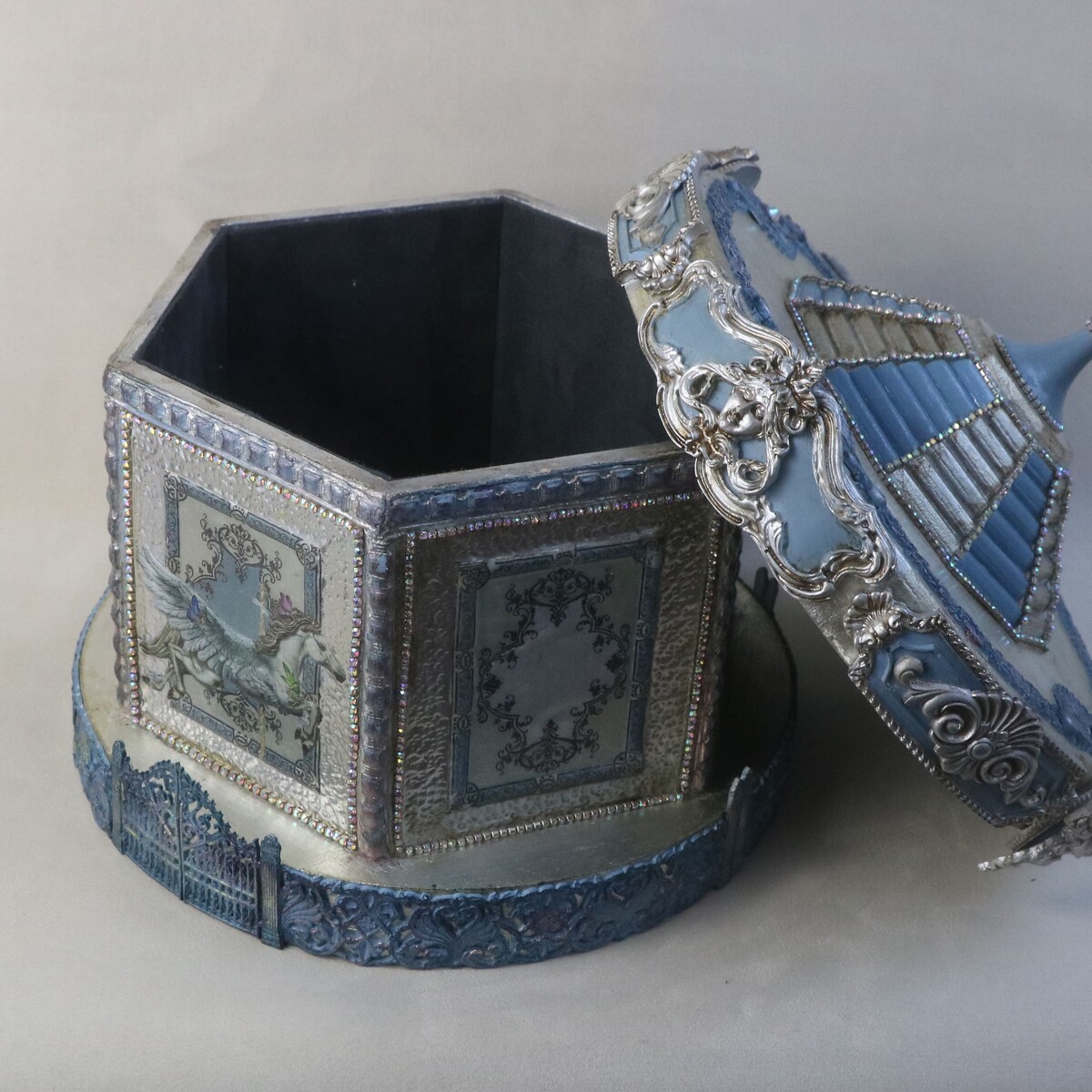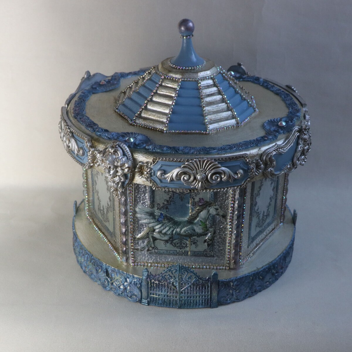 Мастер класс "Magic Carrousel" по изготовлению винтажной шкатулки в технике цветной металлопластики. Нарядный короб c 3d декором создает праздничное настроение, прост в изготовлении и оригинален в декоре.