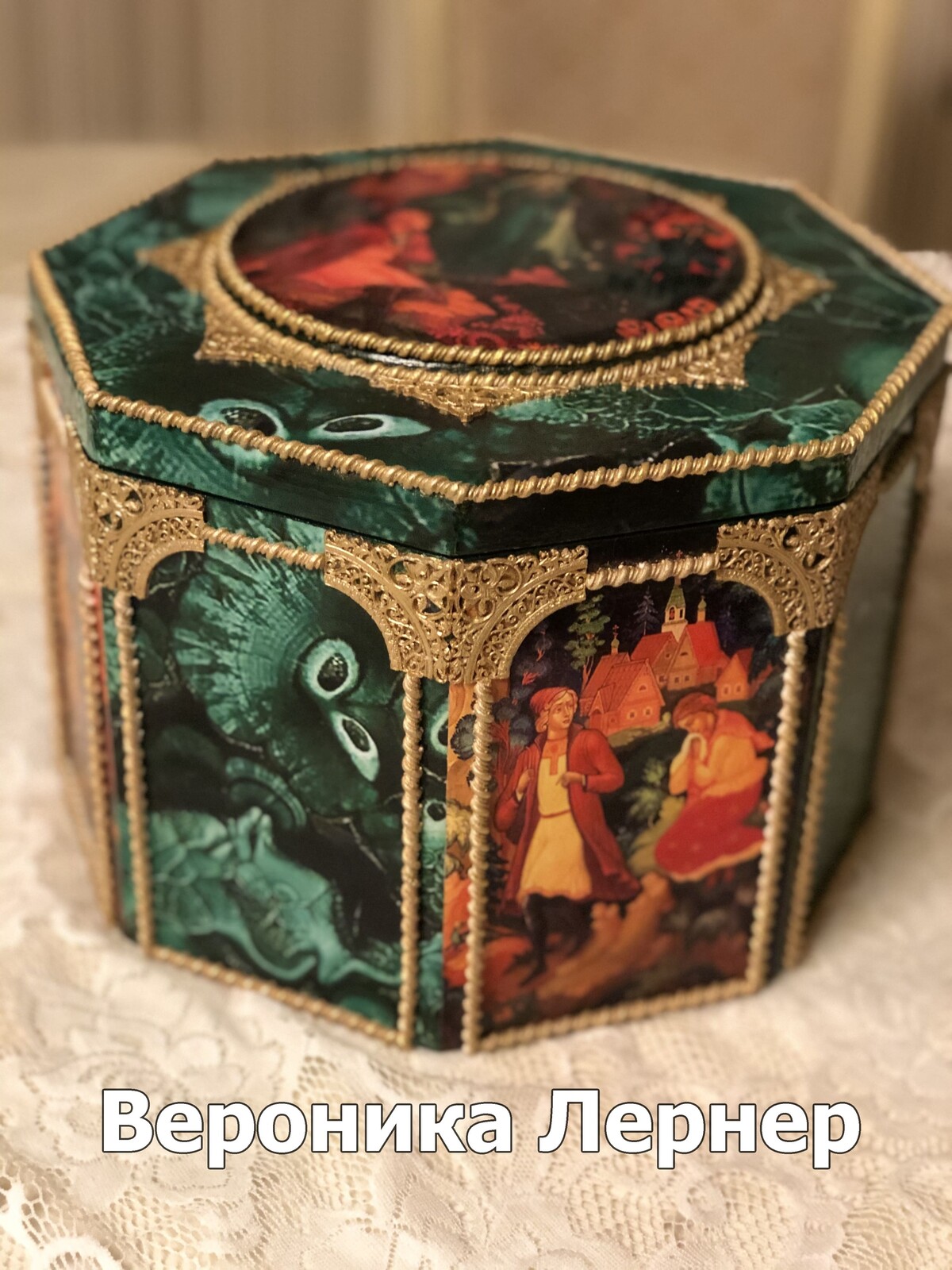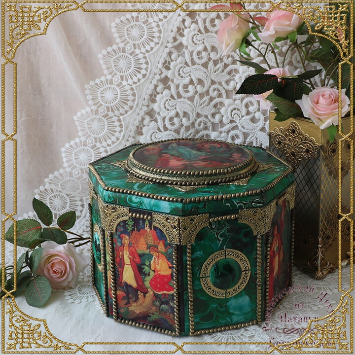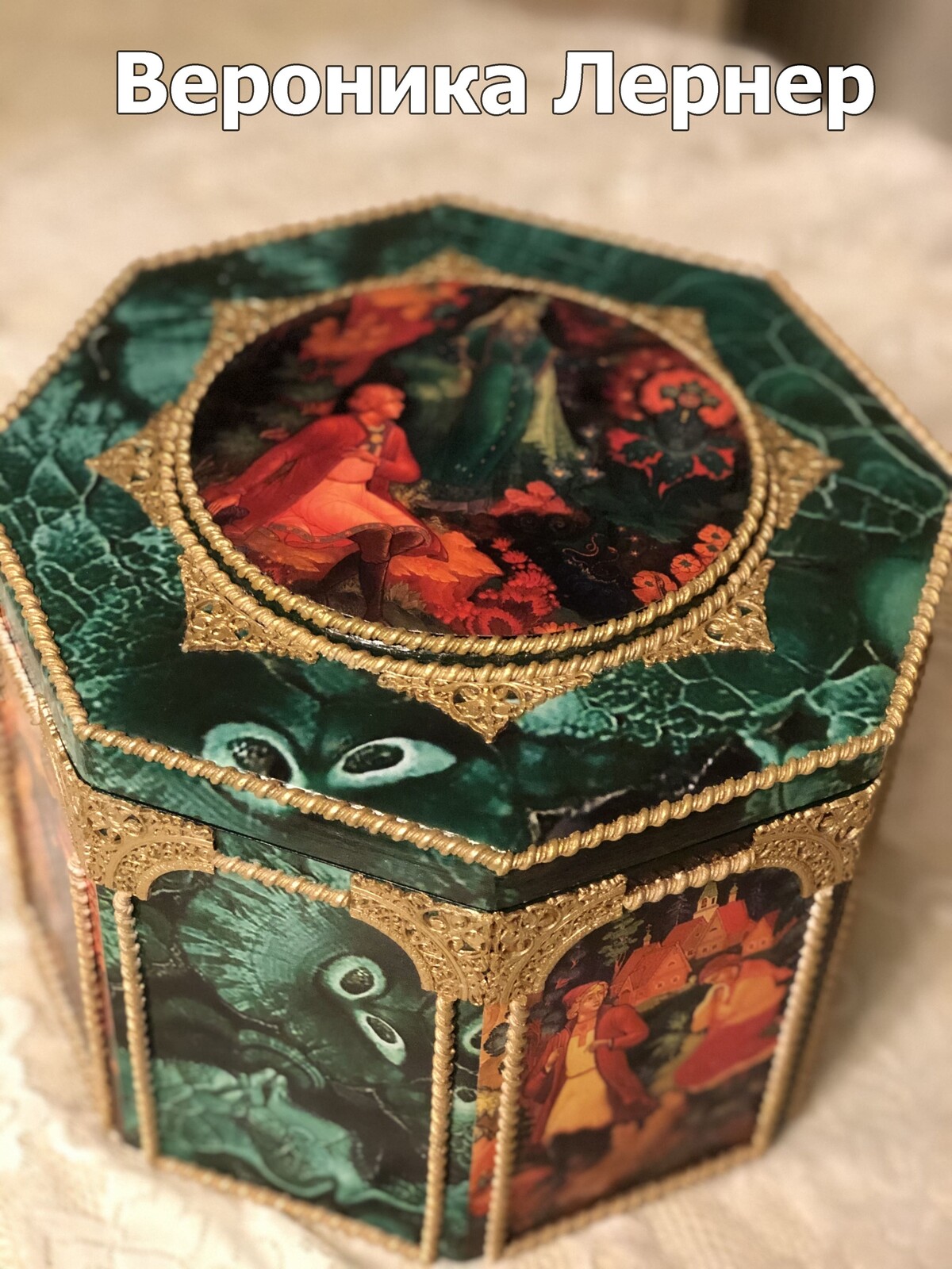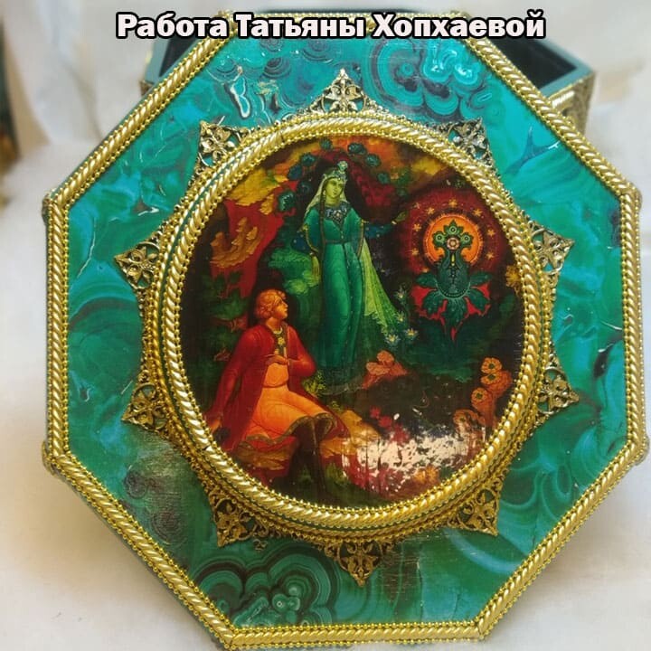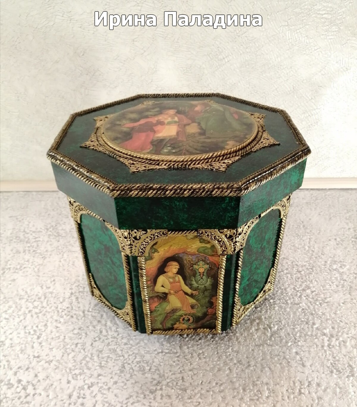 Куда же мы без малахитовых драгоценных самоцветов, которые завораживают глубоким зеленым цветом и причудливыми узорами! Воссоздать эту красоту «рукотворно» просто нереально, поэтому работаем с декупажной картой.