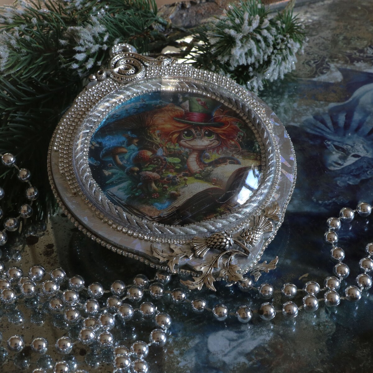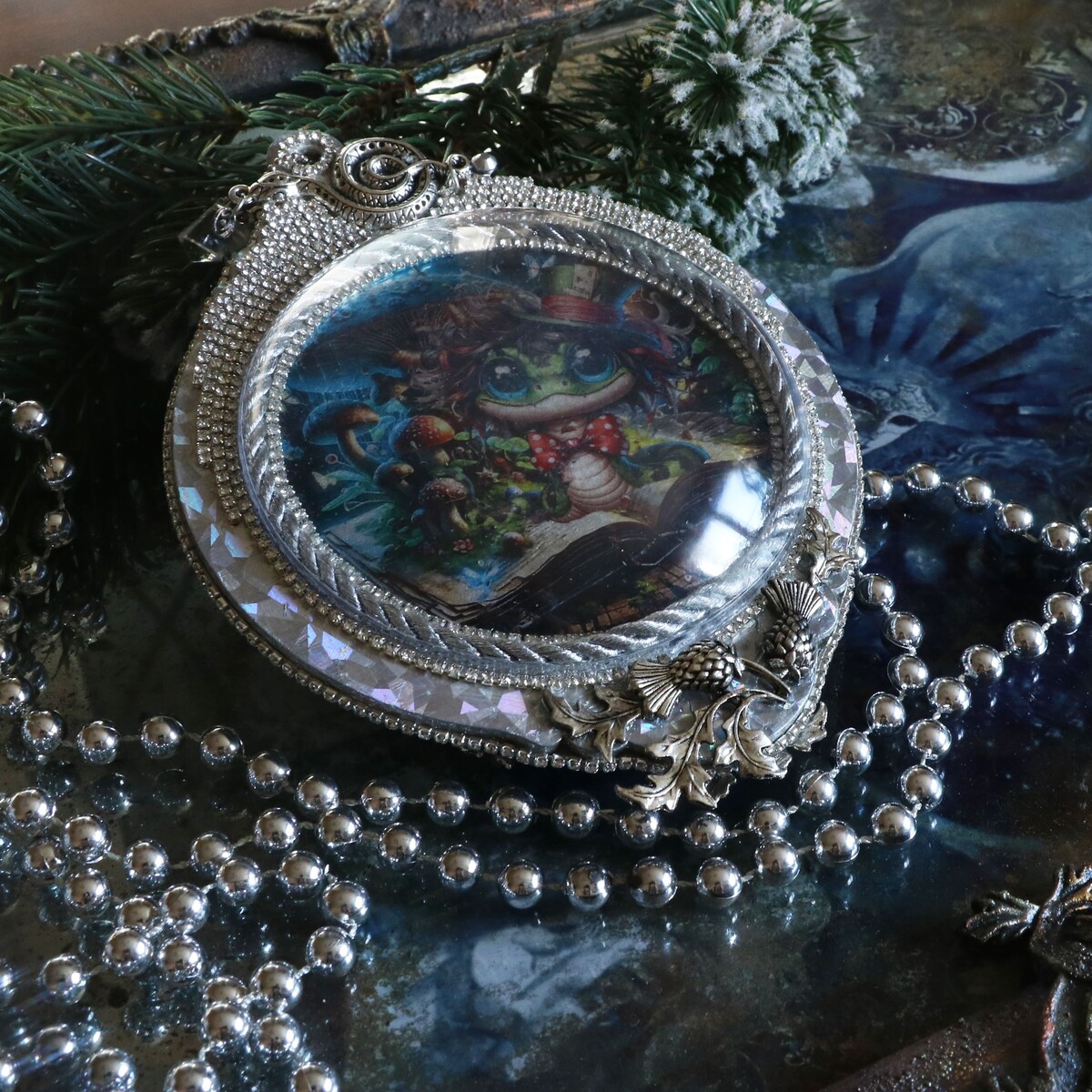 - сделаем обрамление текстильным жгутом, стразовыми цепочками;