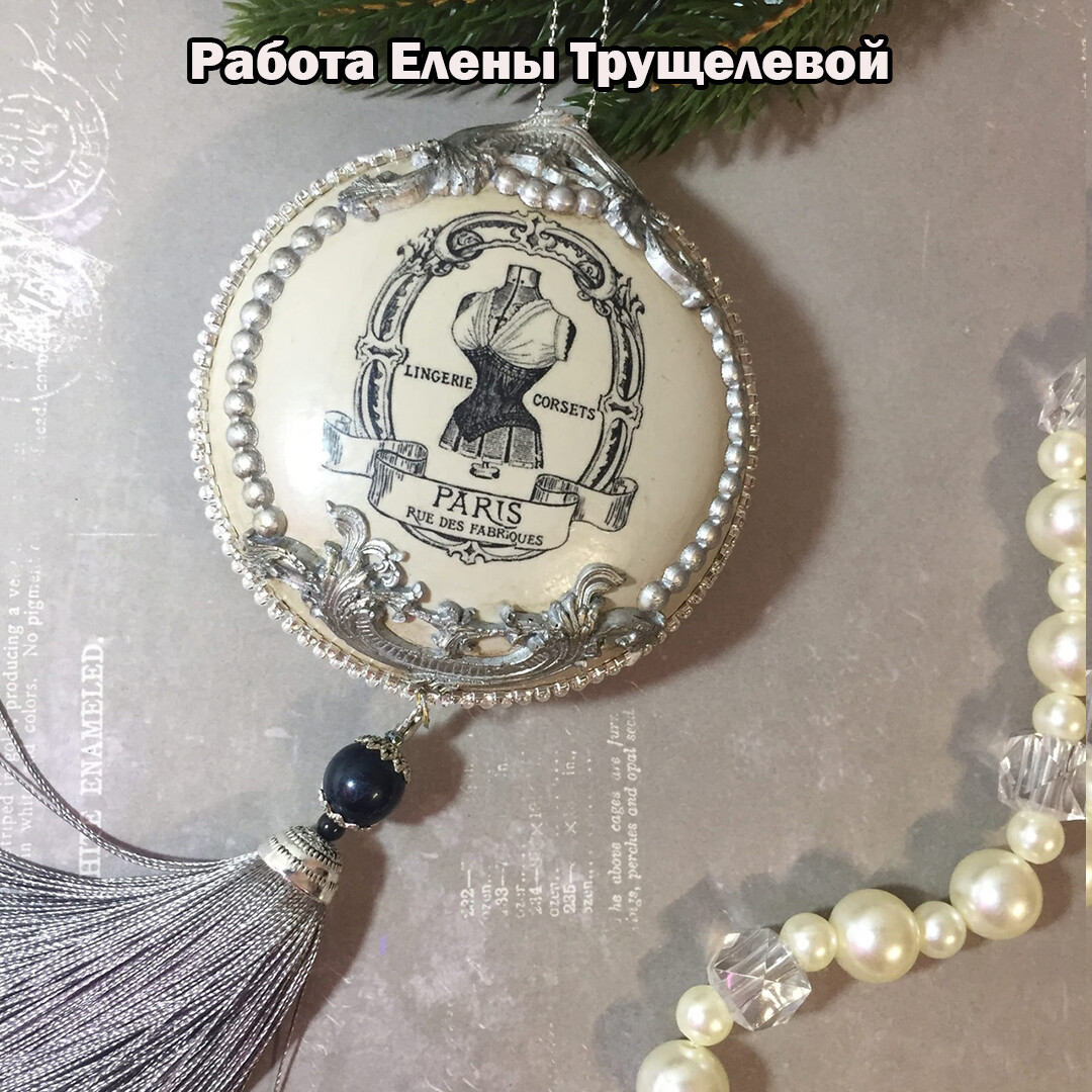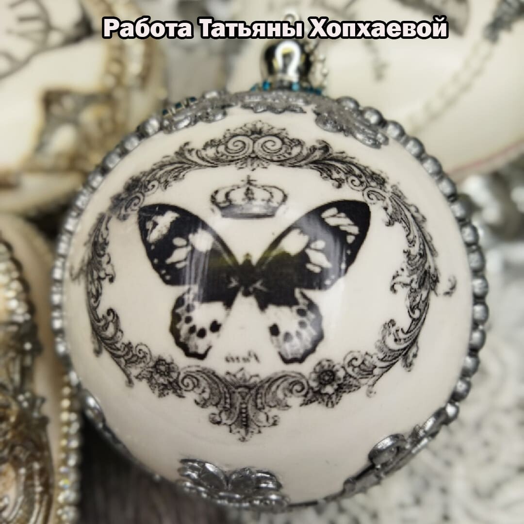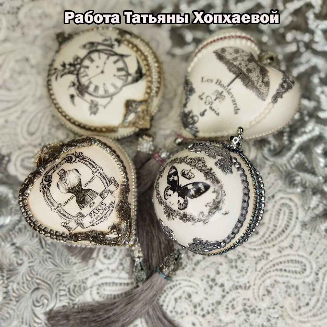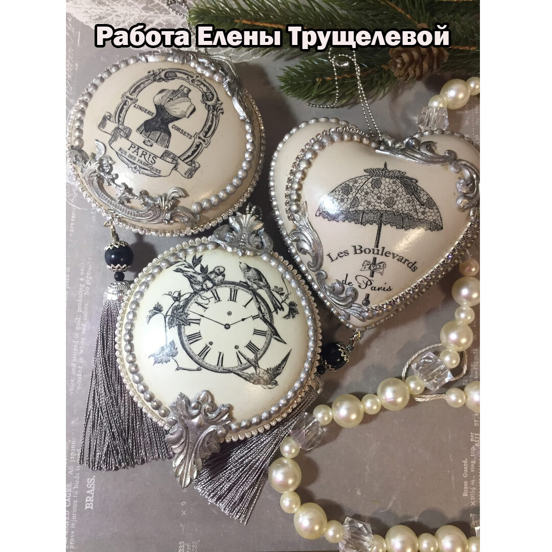 Будем делать монохромный декупаж на новогодних игрушках Парижский шарм.