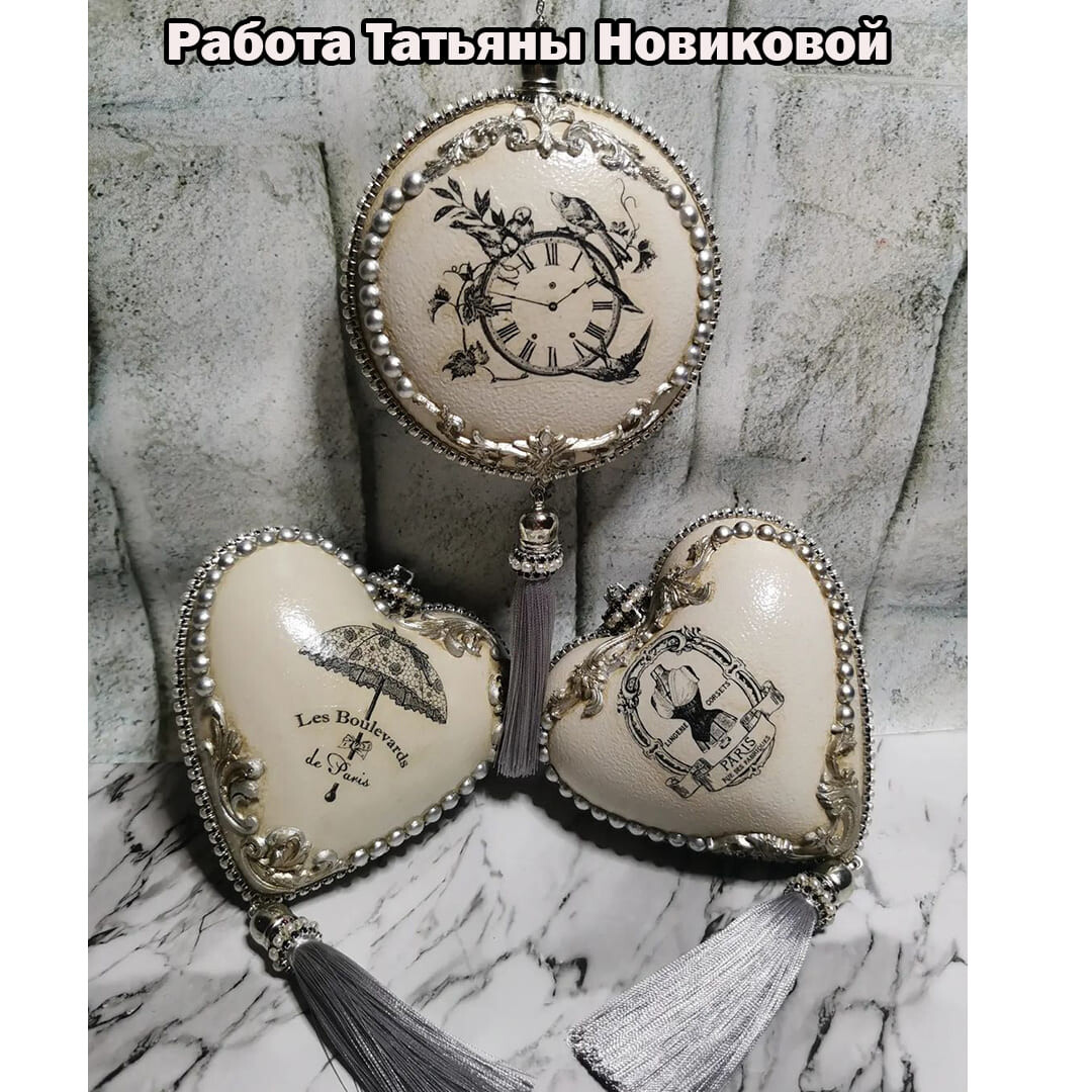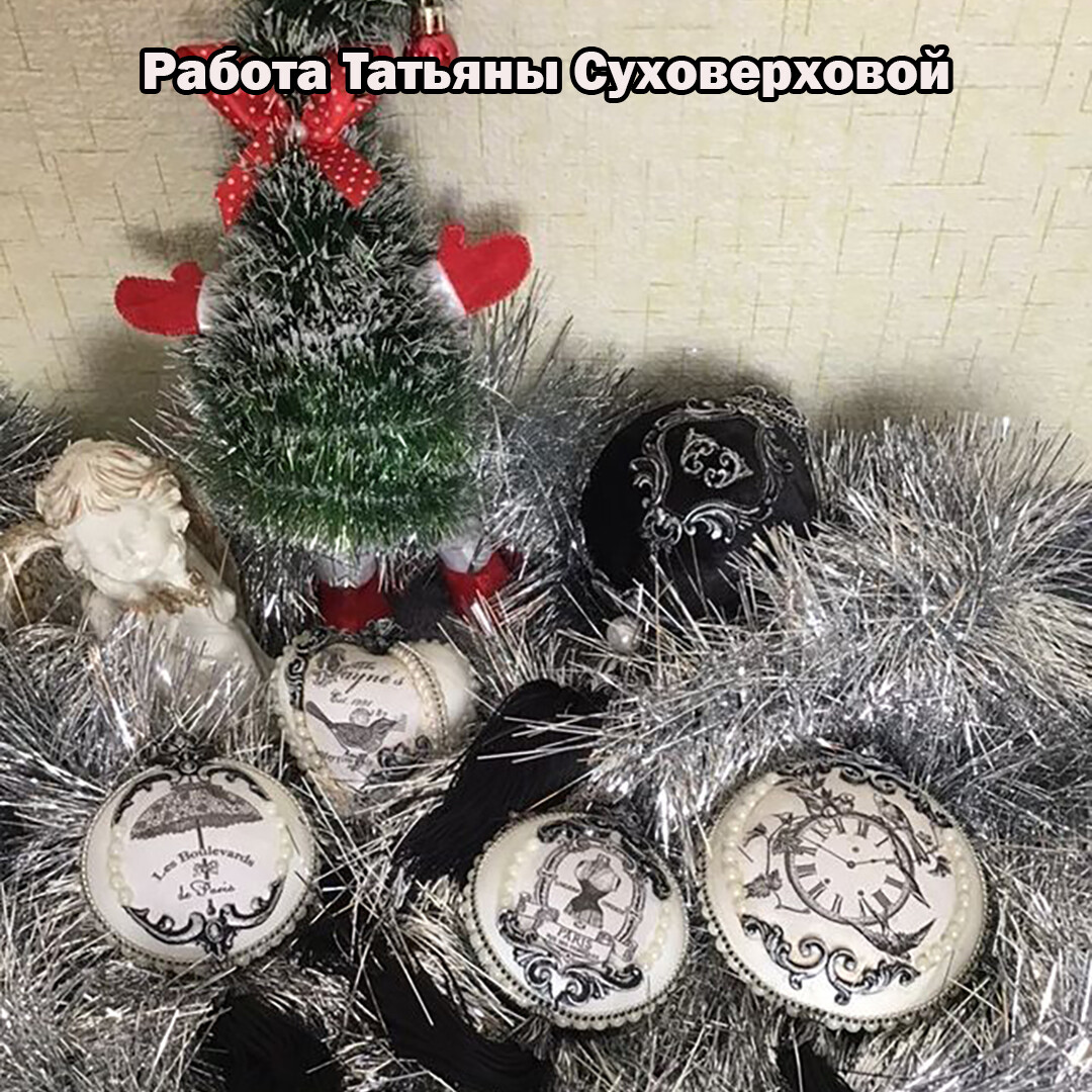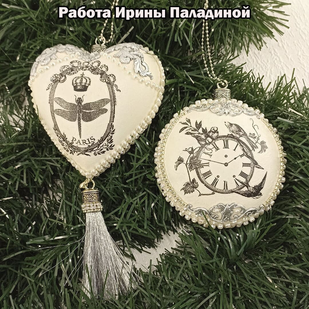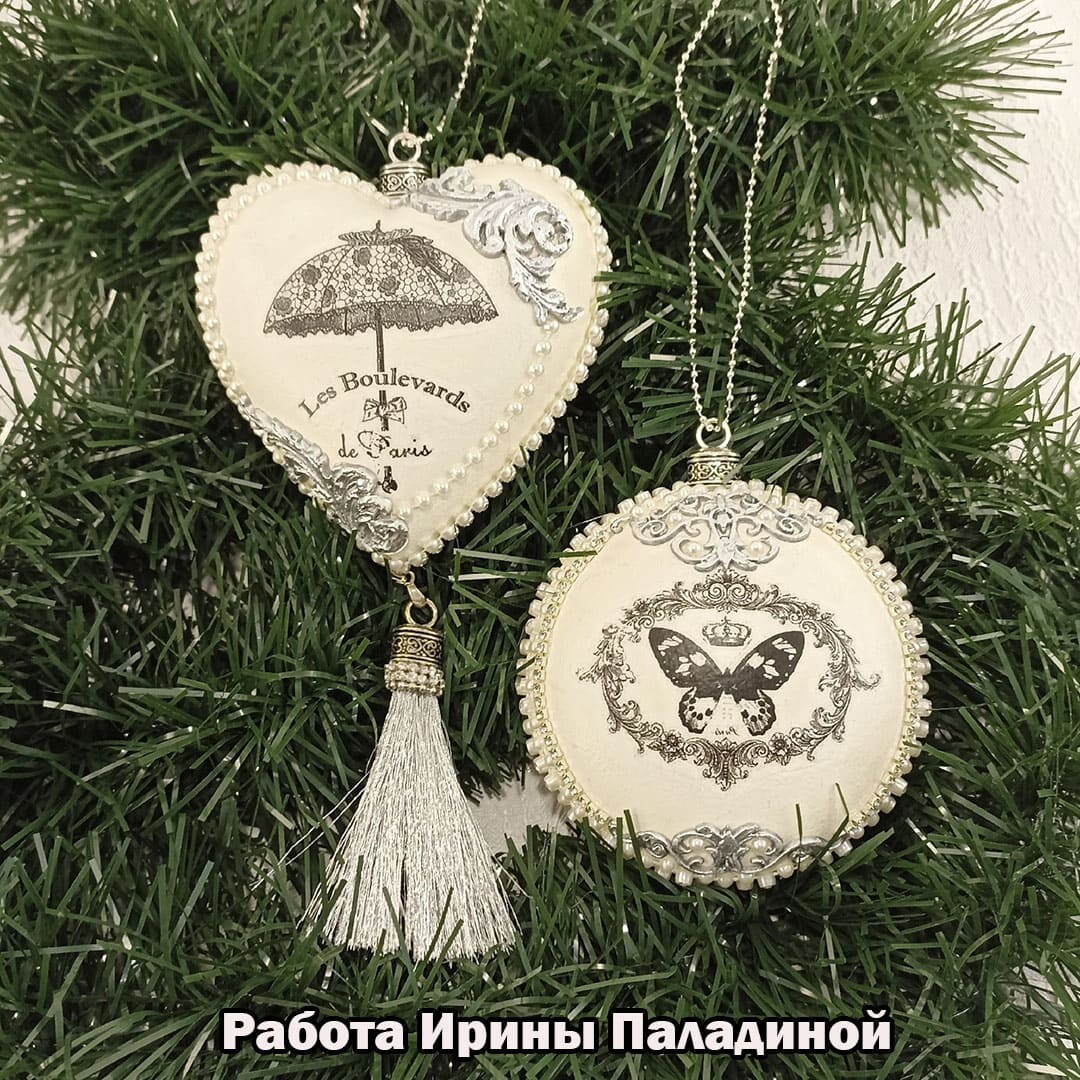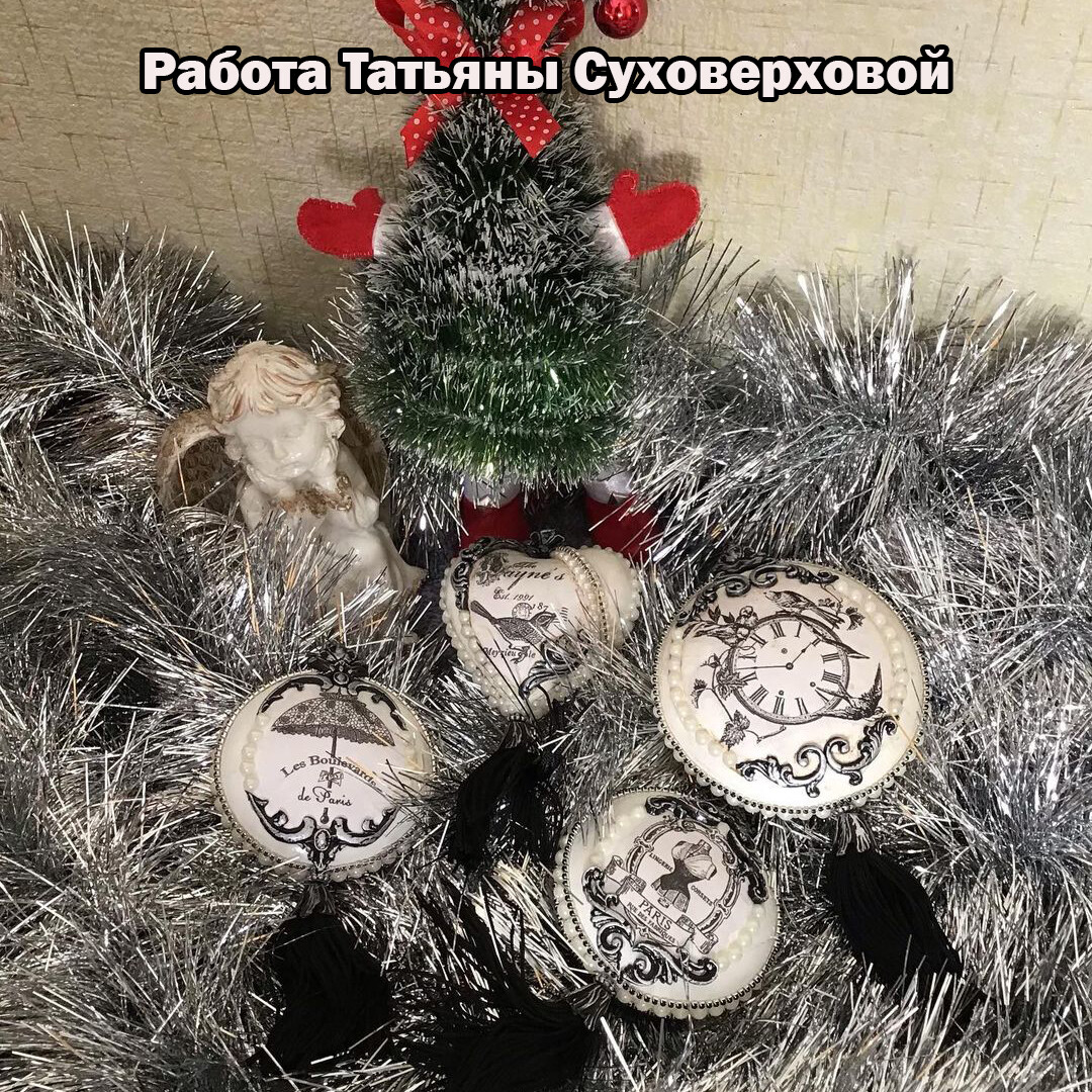 Будем делать монохромный декупаж на новогодних игрушках Парижский шарм.
