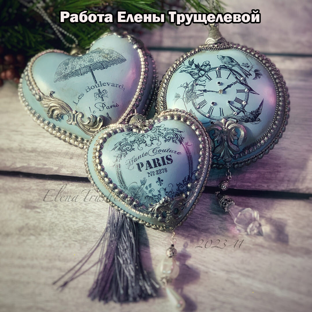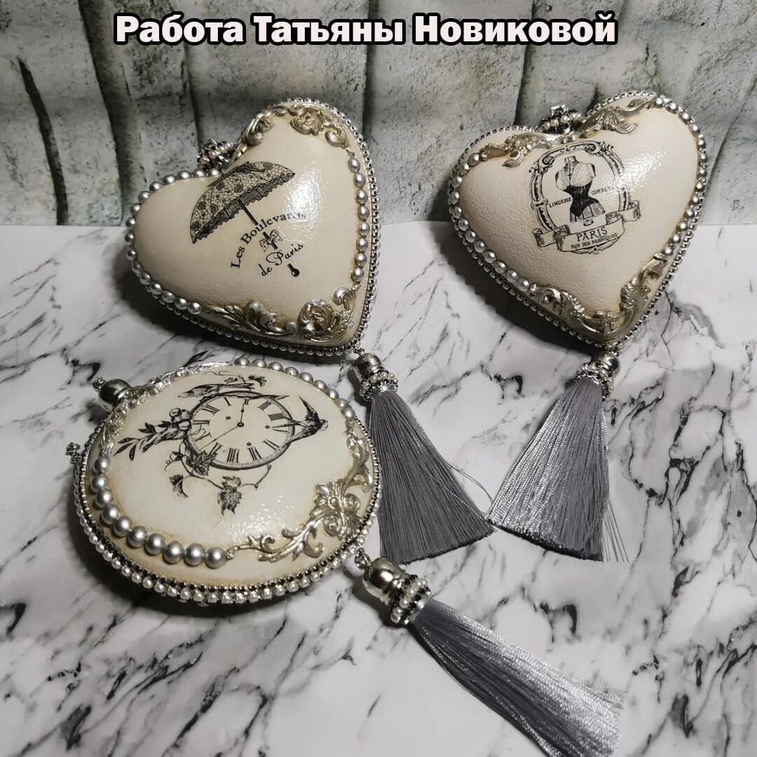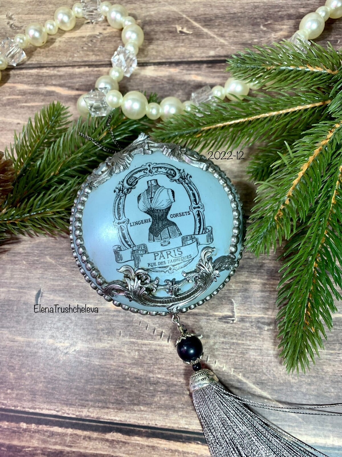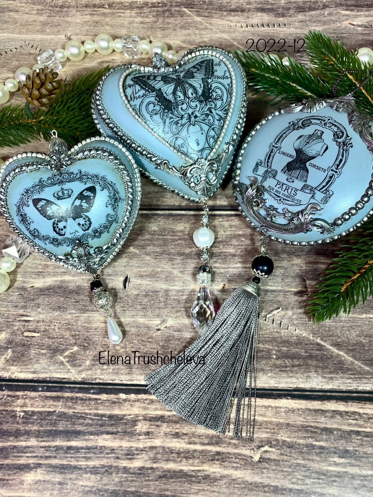 Будем делать монохромный декупаж на новогодних игрушках Парижский шарм.