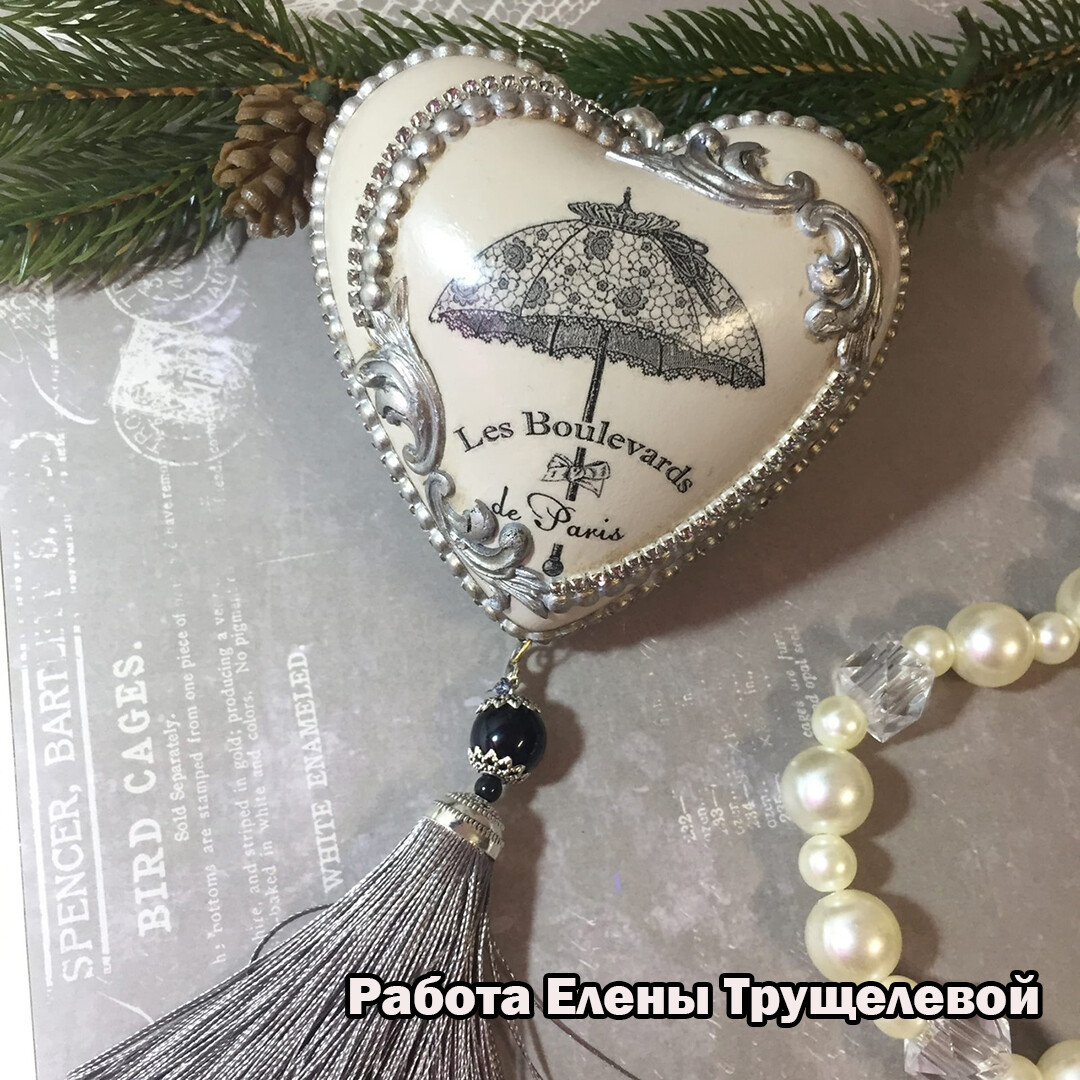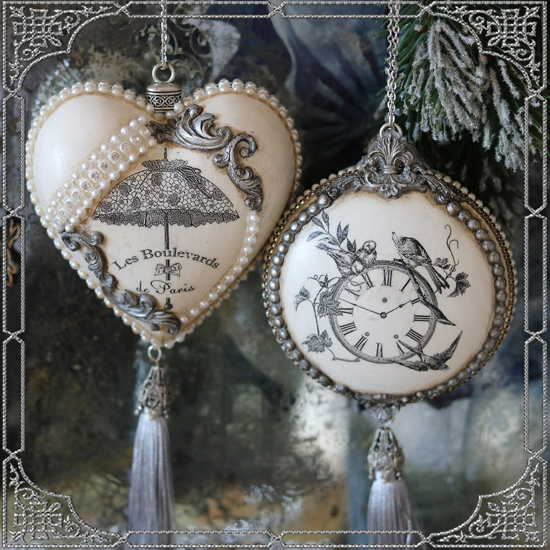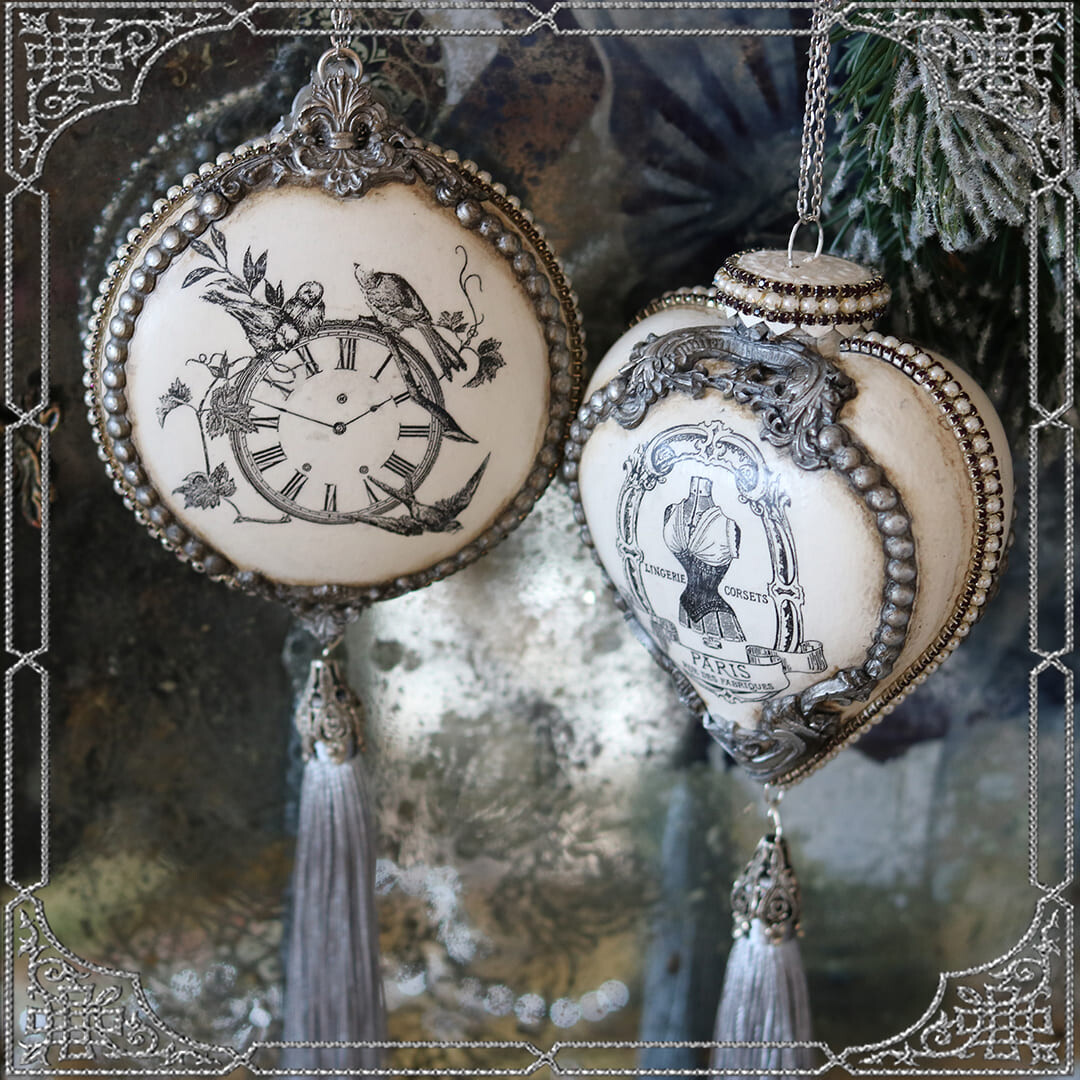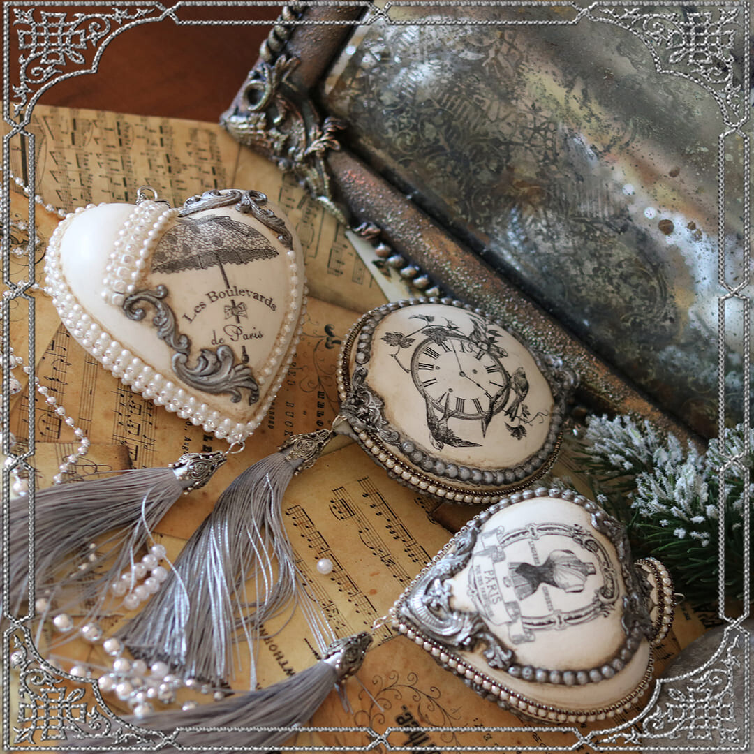 Будем делать монохромный декупаж на новогодних игрушках Парижский шарм.