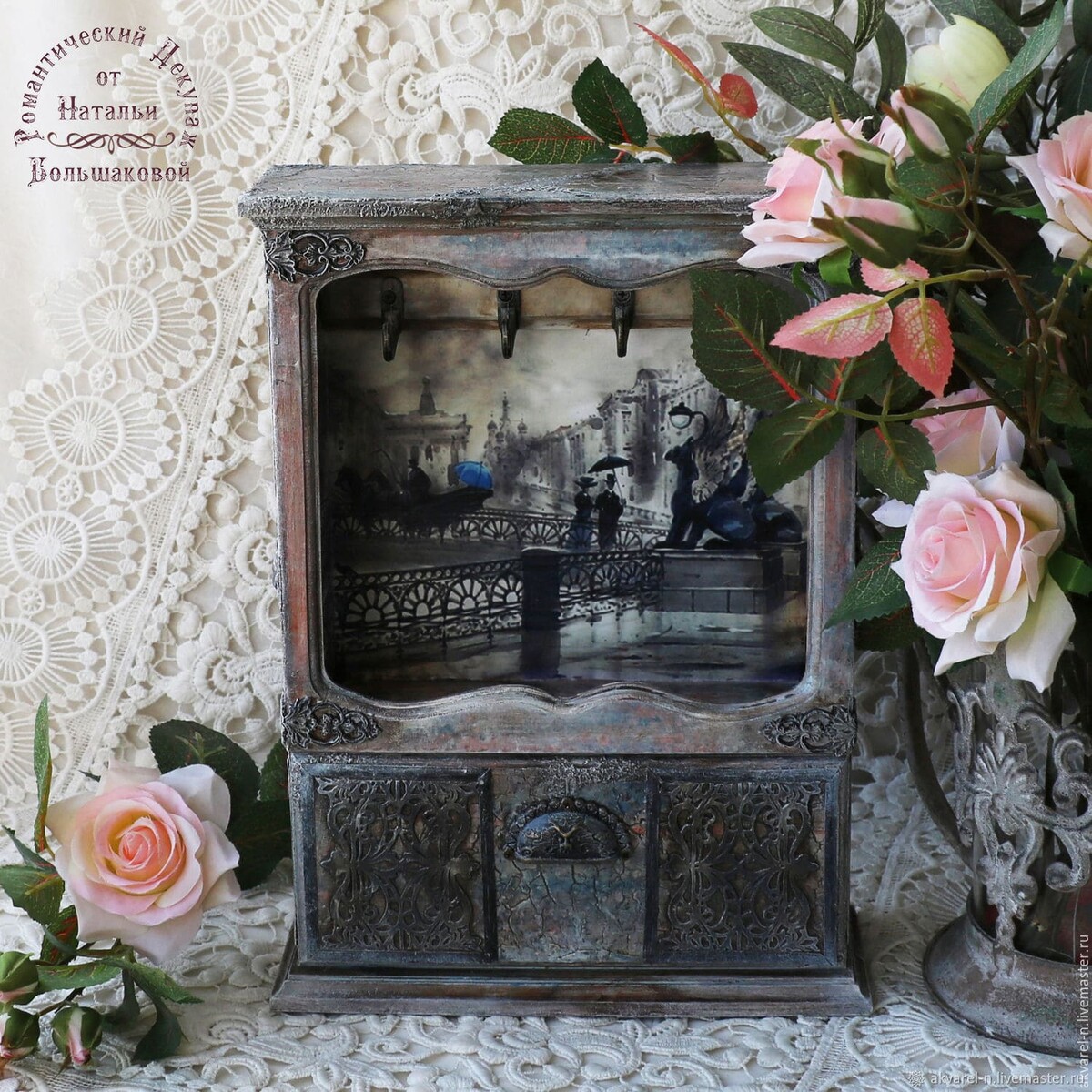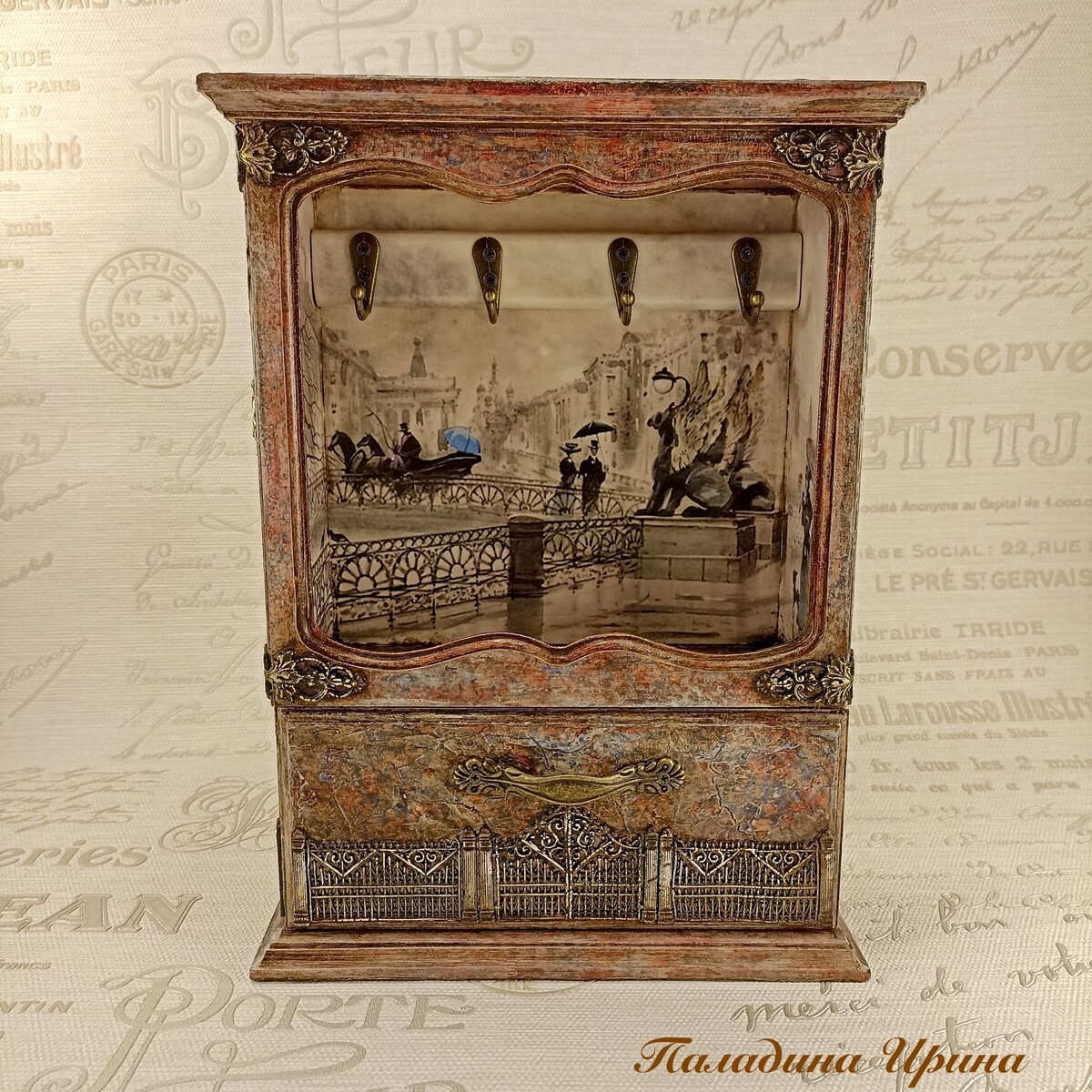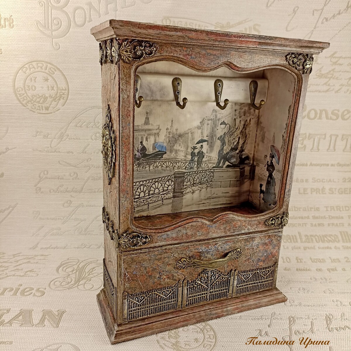 3Д кракелюрный фон с многослойным окрашиванием "а-ля мрамор". Литое кружево и объемные элементы на самодельных молдах. Патинирование и обрамление литого кружева витражной лентой.