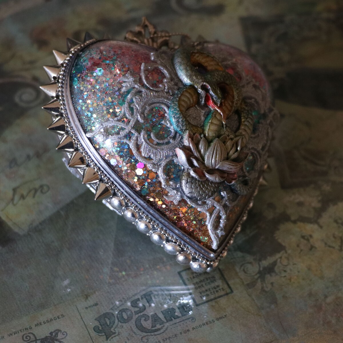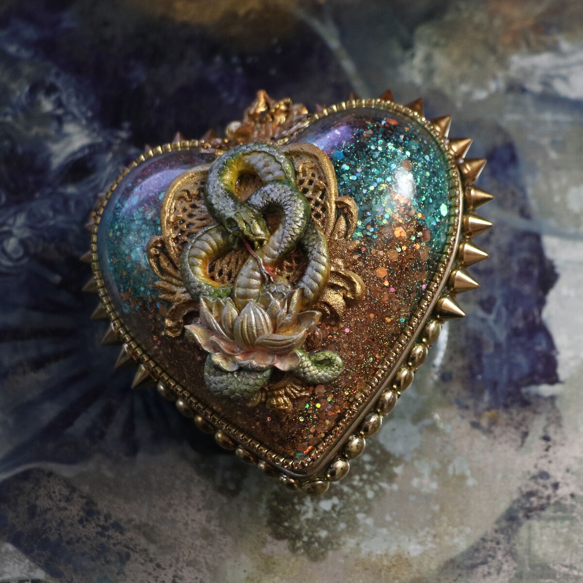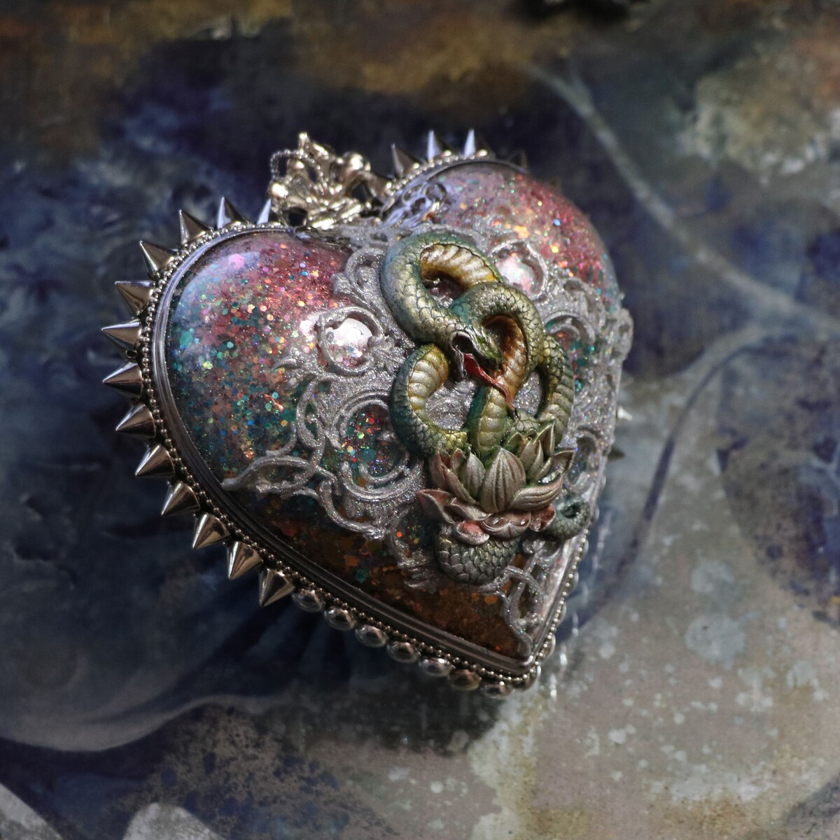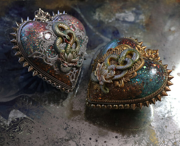 - украсим работу шипами, заклепками, витражной лентой, шариковыми и стразовыми цепочками;