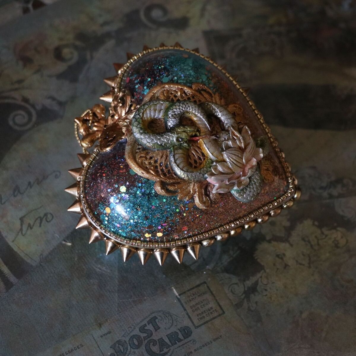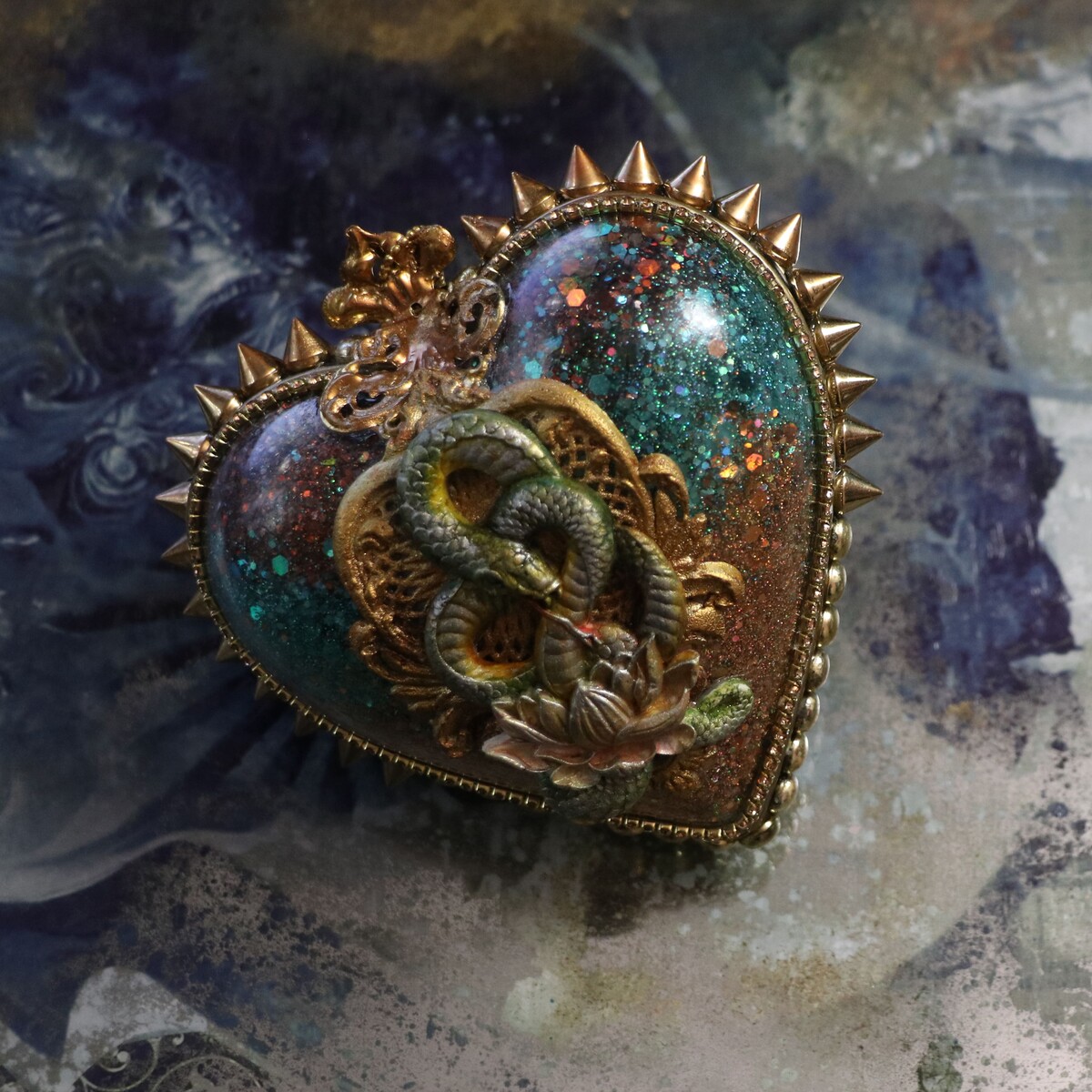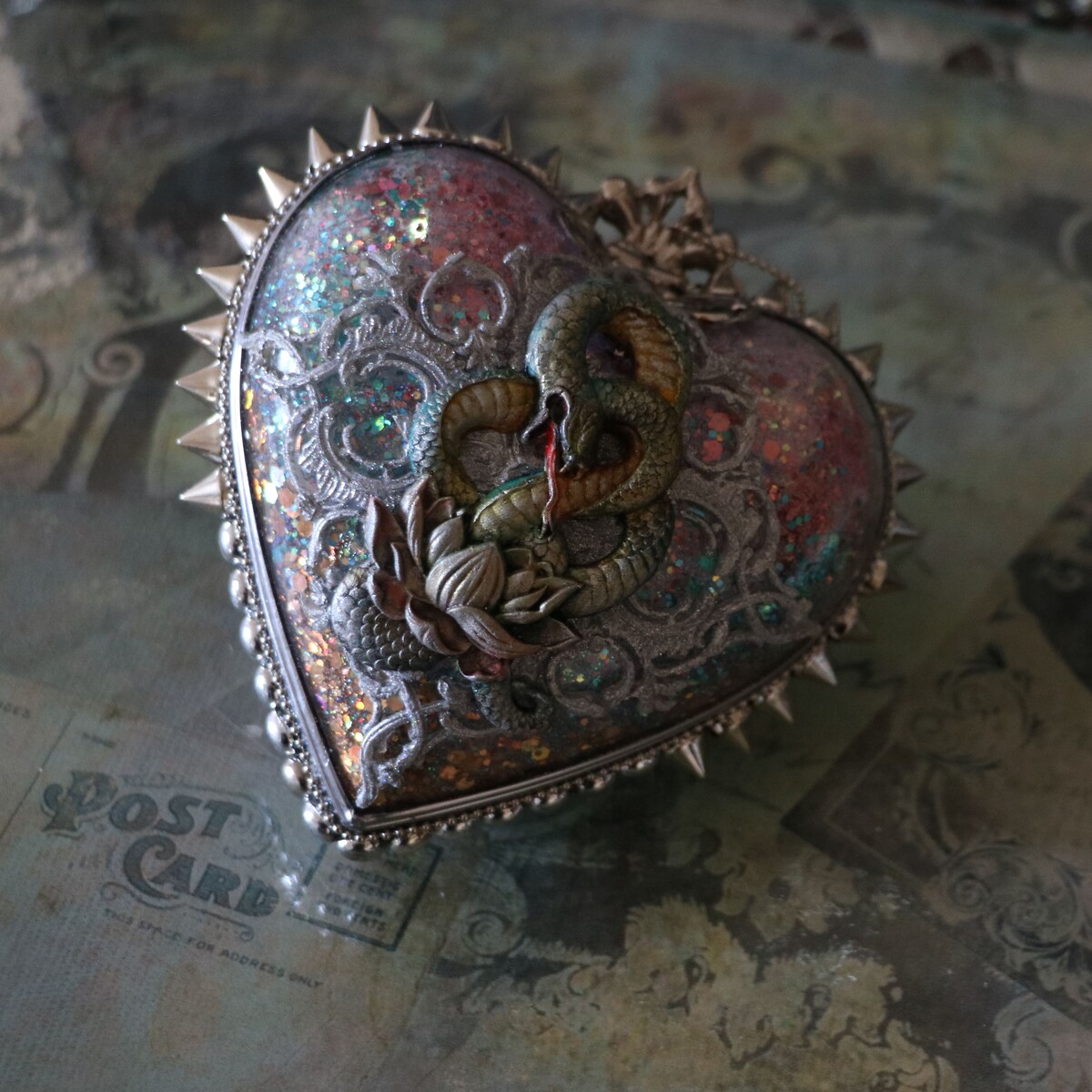 - украсим работу шипами, заклепками, витражной лентой, шариковыми и стразовыми цепочками;