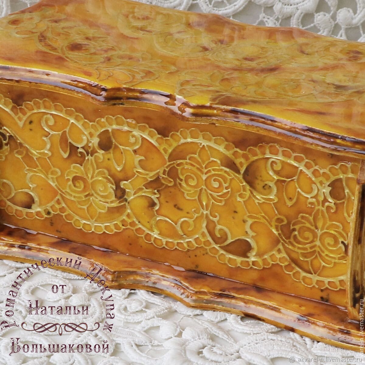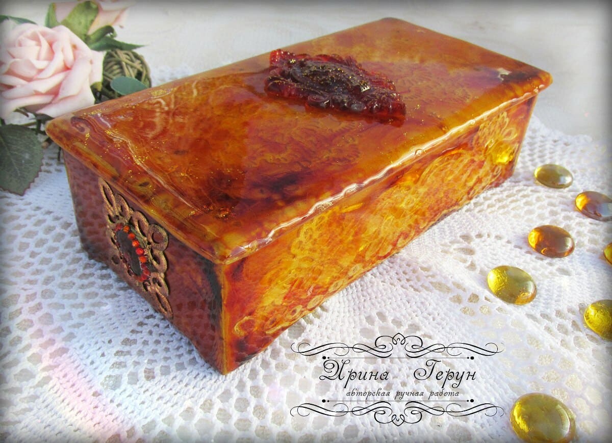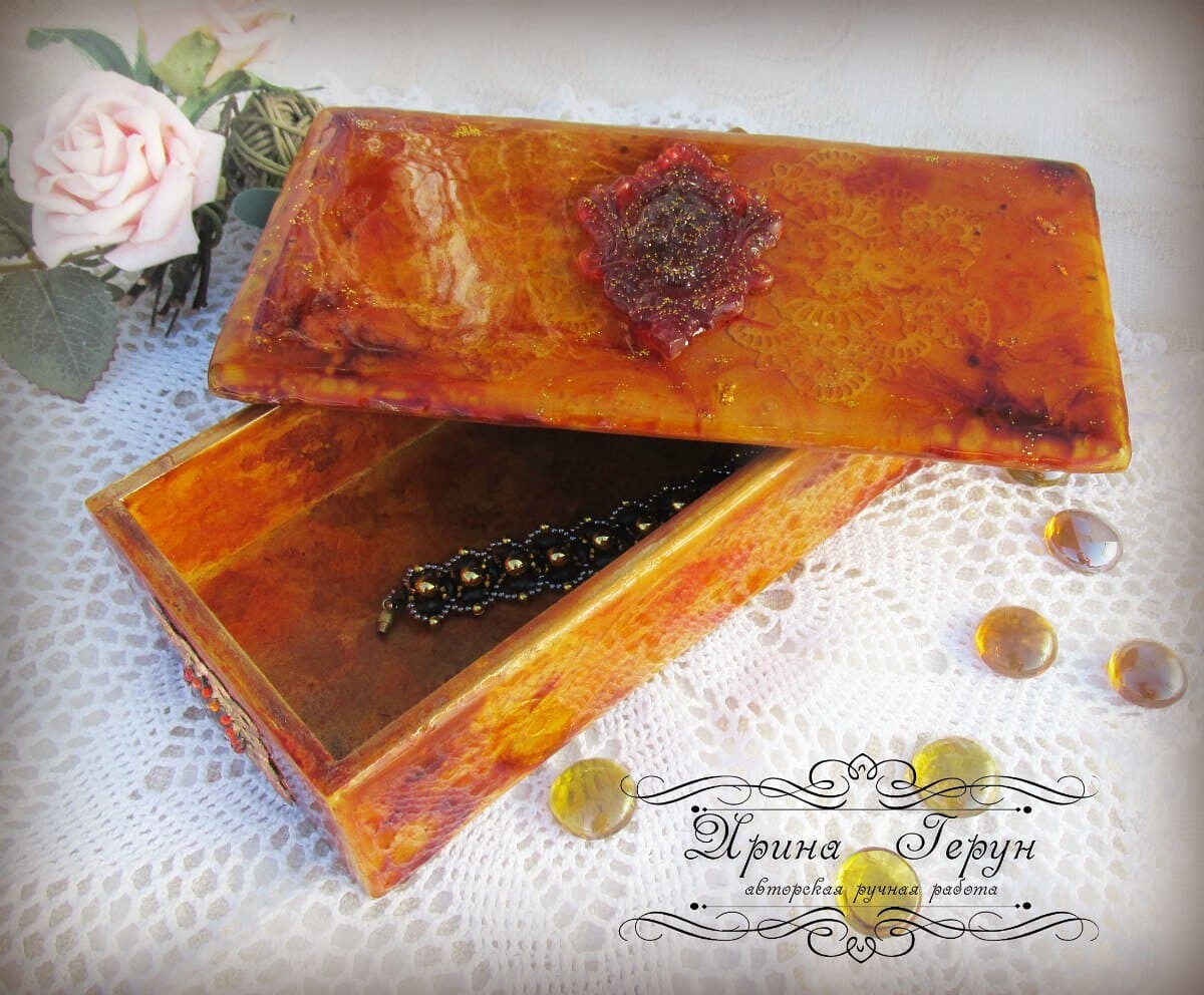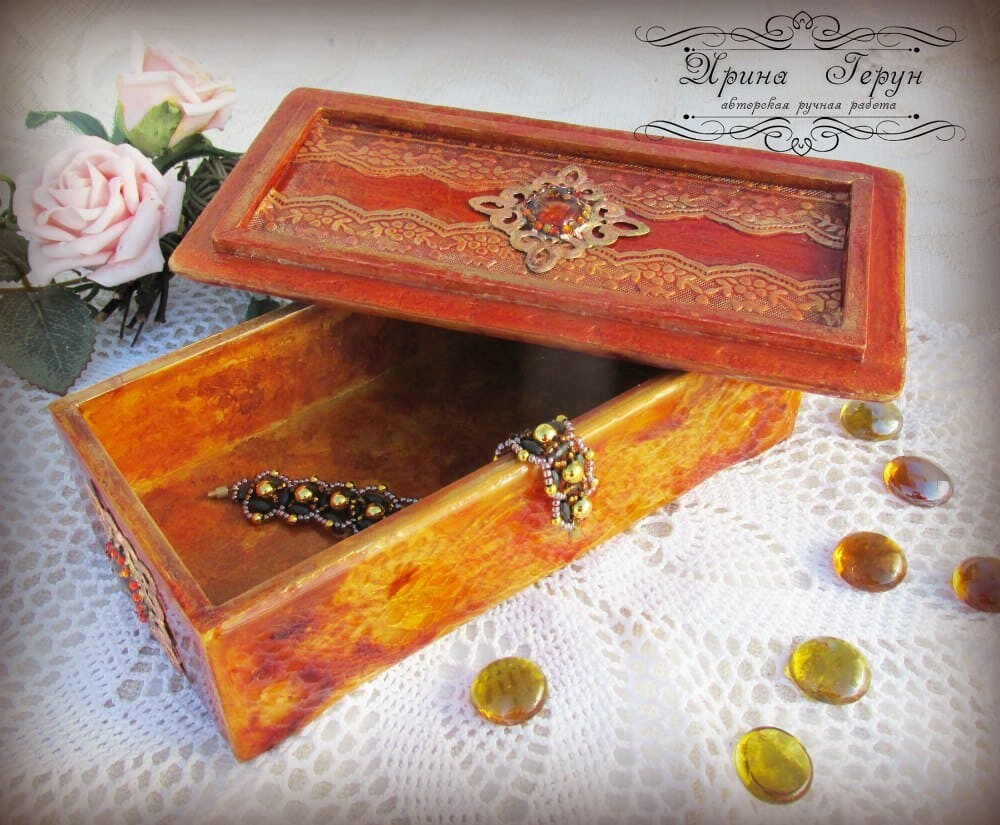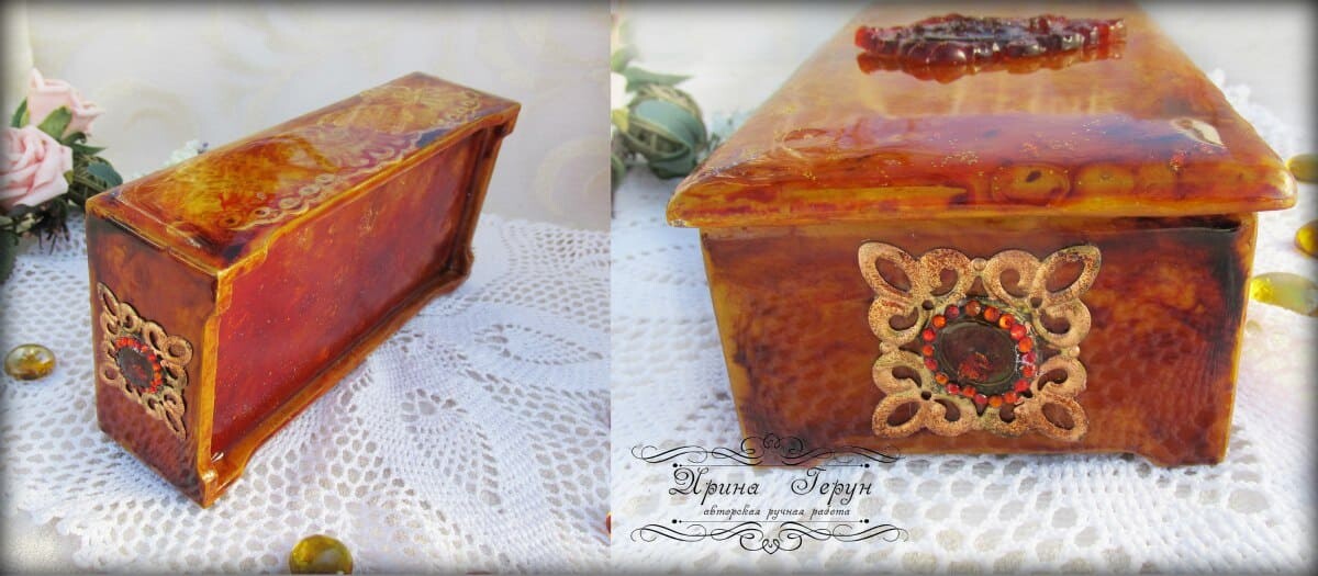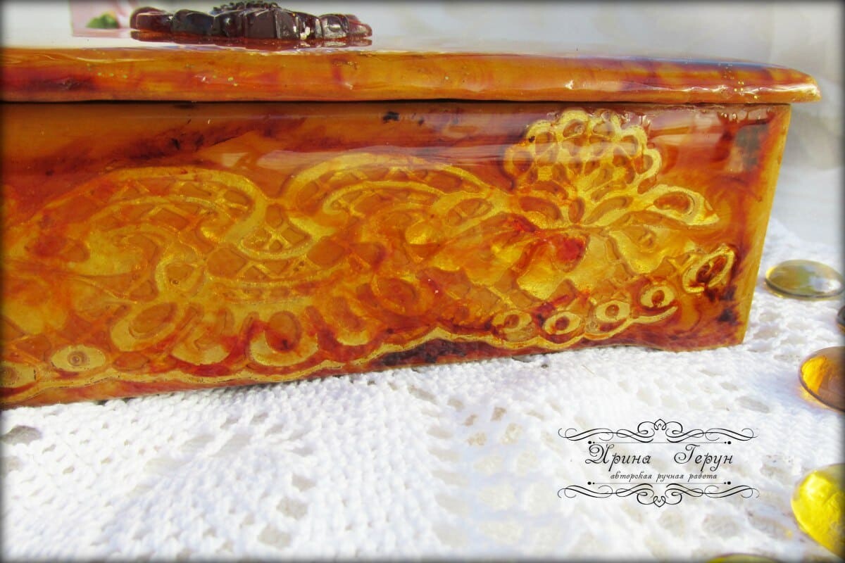 Работы на чайную тему очень востребованы у наших покупателей. И сегодня я решила сделать шкатулочку в ярких, солнечных, янтарных расцветках.