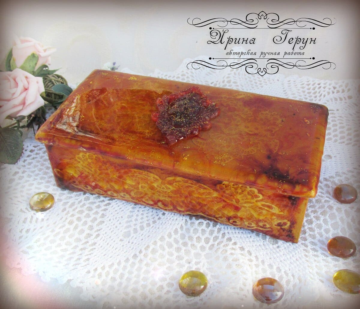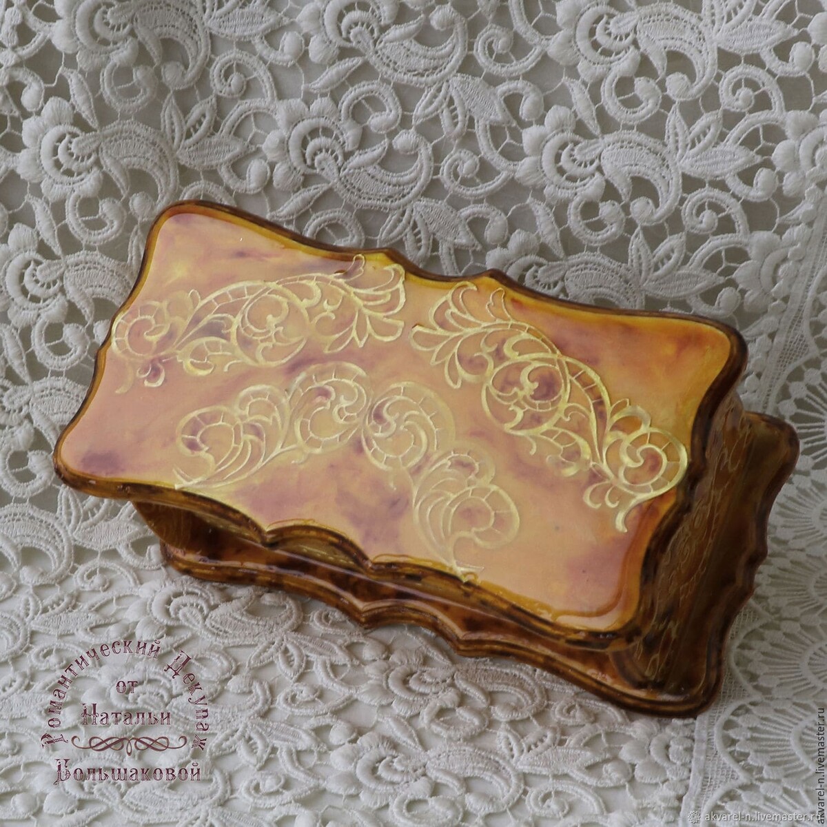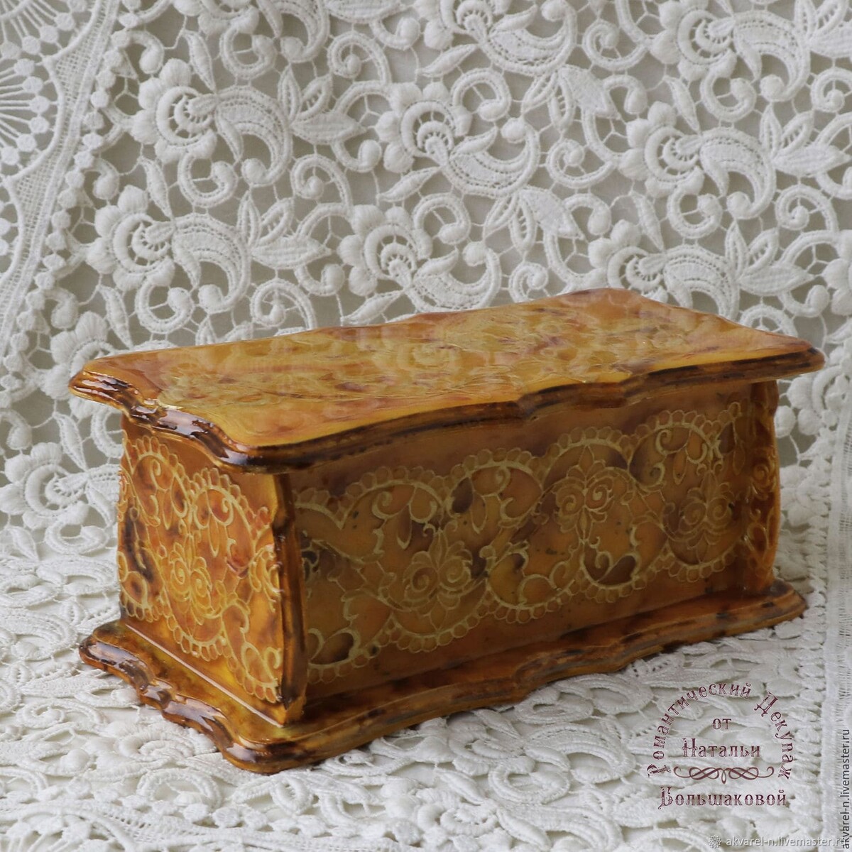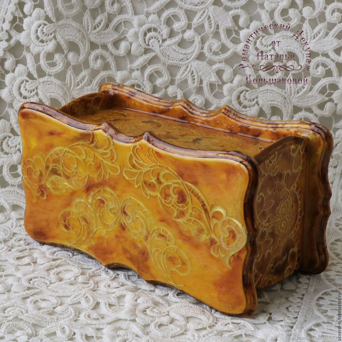 Работы на чайную тему очень востребованы у наших покупателей. И сегодня я решила сделать шкатулочку в ярких, солнечных, янтарных расцветках.
