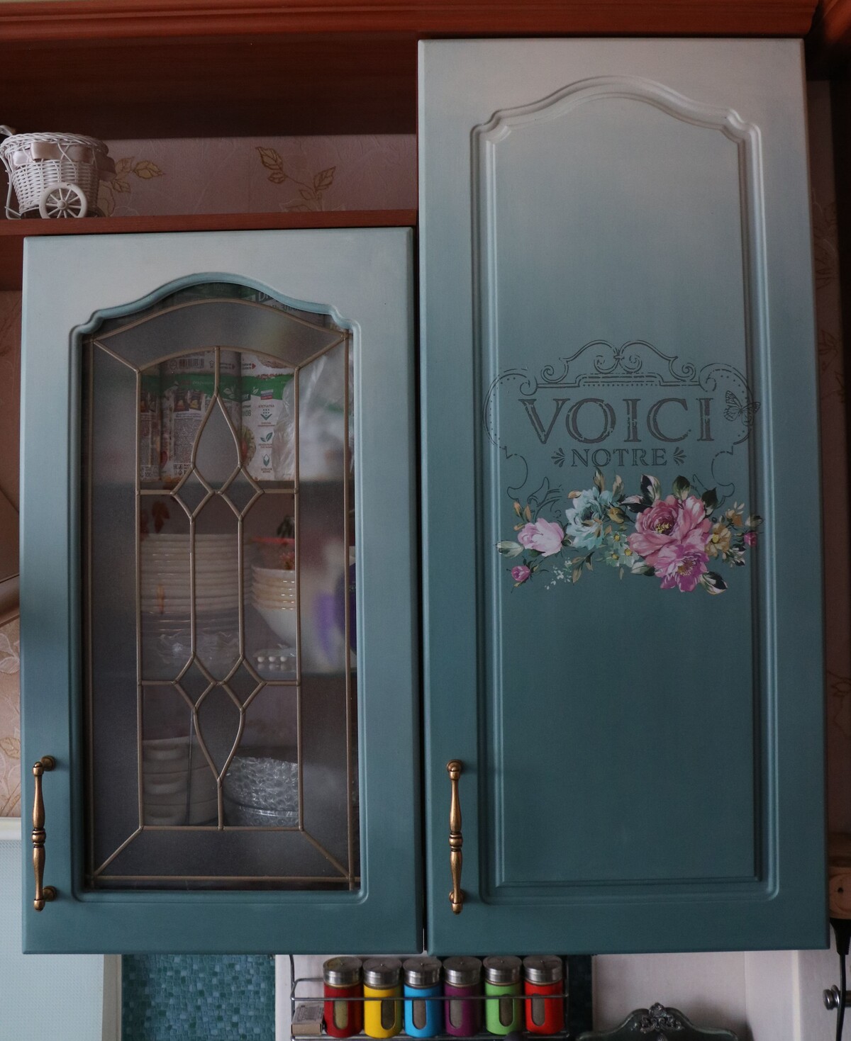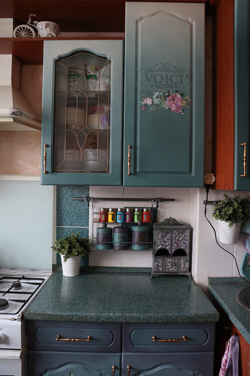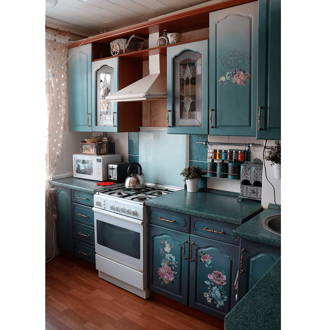 Когда пленка с фасада моей старой кухоньки упала мне на голову,пришлось заняться перекраской.