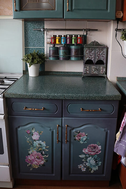 Кухня как живописное полотно. Переливы красок, нежный цветочный декор и