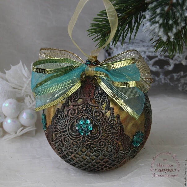 Готовимся к Новому году, делаем красивые подарки своими руками!Видео мастер класс по изготовлению новогодних шаров, которые выполнены в авторской технике, с использованием самодельного литого кружева.