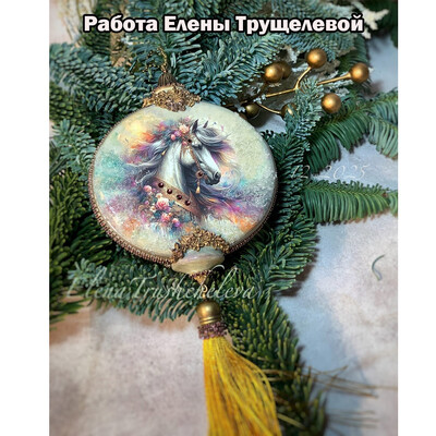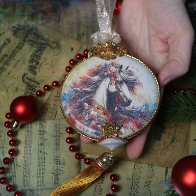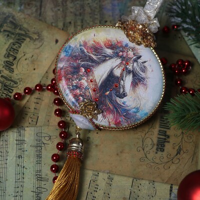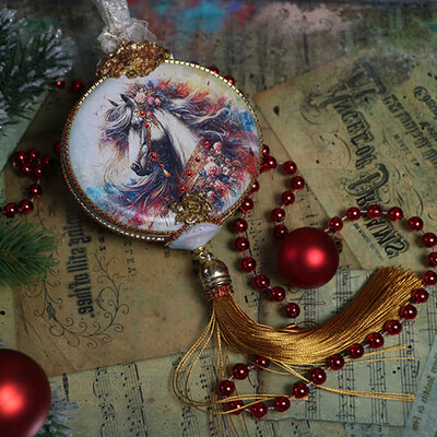 Новогодняя игрушка "Акварельная лошадка"
