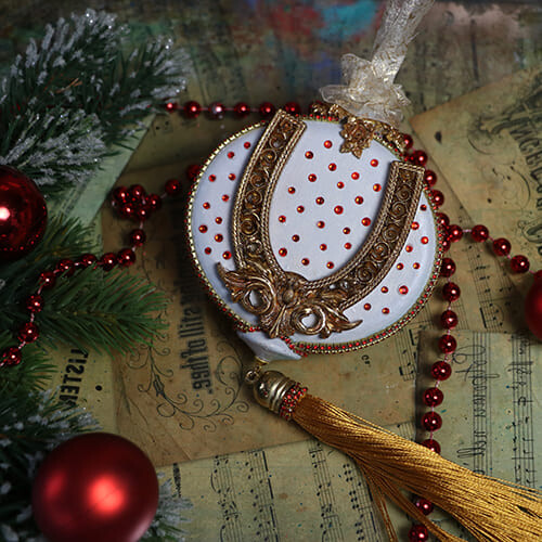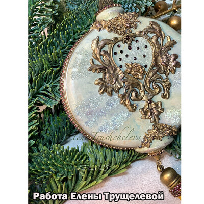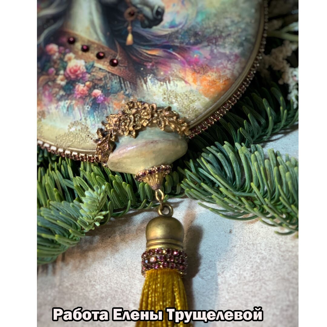 - украсить работу стразами, витражной лентой и стразовыми цепочками;